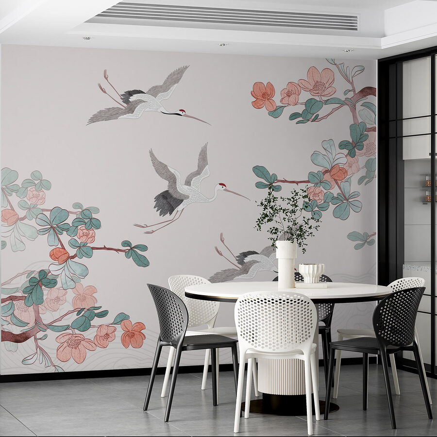 Transformați-vă spațiul cu acest mural uimitor, care prezintă un grup grațios de păsări zburând prin aer. Este ca și cum ați invita un suflu de aer proaspăt în camera dvs. – nu mai aveți nevoie de fereastră când aveți această frumusețe pe perete. Florile delicate și culorile senine creează o atmosferă calmă și energizantă. Imaginați-vă că savurați cafeaua de dimineață în timp ce admirați aceste creaturi elegante – serios, vă va îmbunătăți instantaneu starea de spirit! În plus, cui nu-i place să aibă puțină natură în interior? Este chic, este elegant și cu siguranță va stârni câteva complimente când prietenii vă vor vizita. Perfect pentru sufragerie sau pentru un colț confortabil, acest mural este aici pentru a adăuga un strop de minune zilei dvs.!