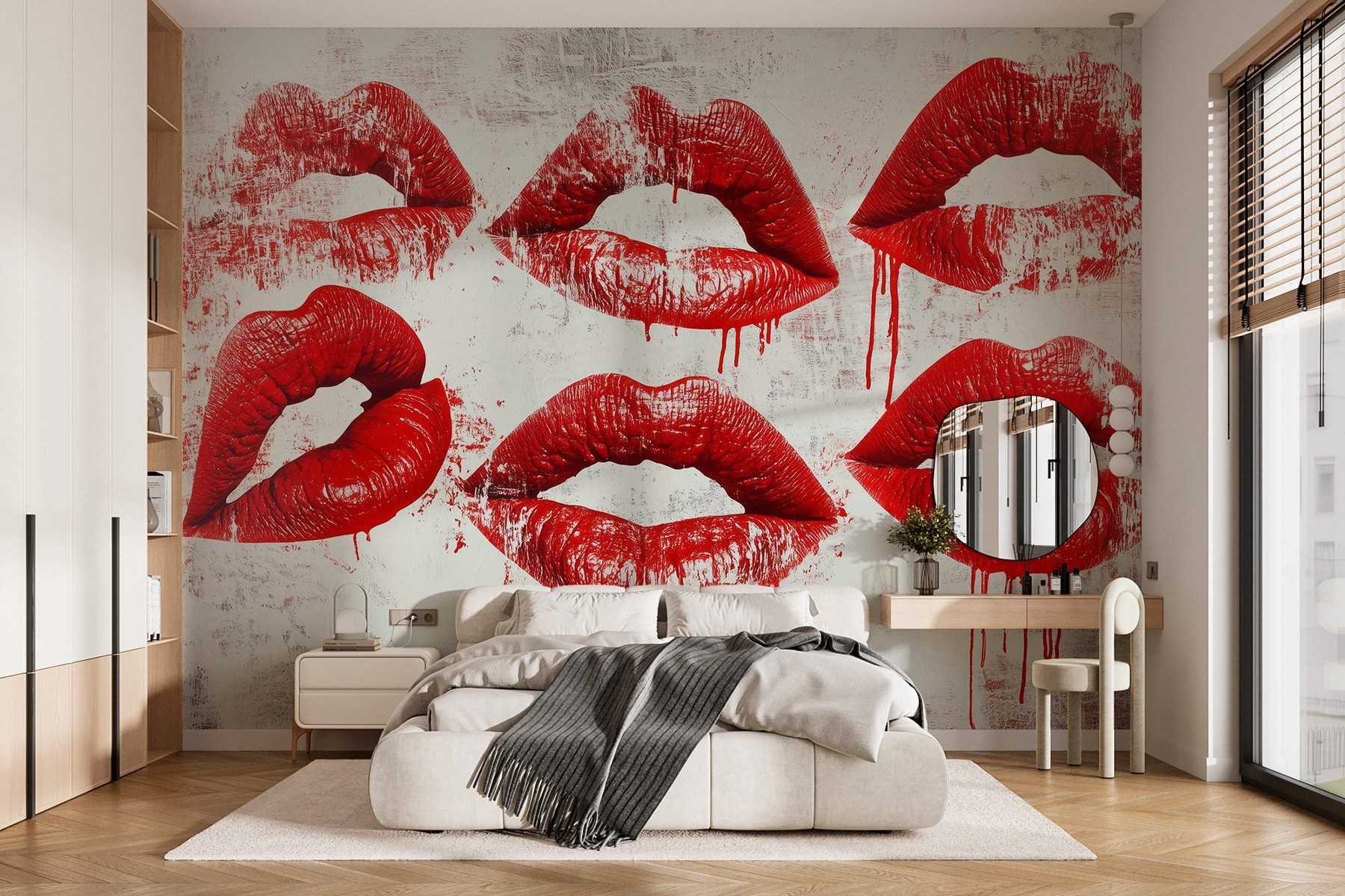 Step into a world that’s equal parts bold and playful with this “Group of Red Lips with Dripping Blood” mural. Imagine these luscious, red lips bringing an unexpected pop to your space—like they just had a little too much fun at a party. The striking contrast against the white background adds a dramatic flair, sparking conversations faster than your friend’s wild stories. Perfect for a bedroom, studio, or even that cozy nook where you sip your morning coffee. It’s a little cheeky, a tad edgy, and oh-so unforgettable. Just picture the vibes—sassy, fun, and definitely full of life. Who wouldn’t want a touch of playful drama on their wall?