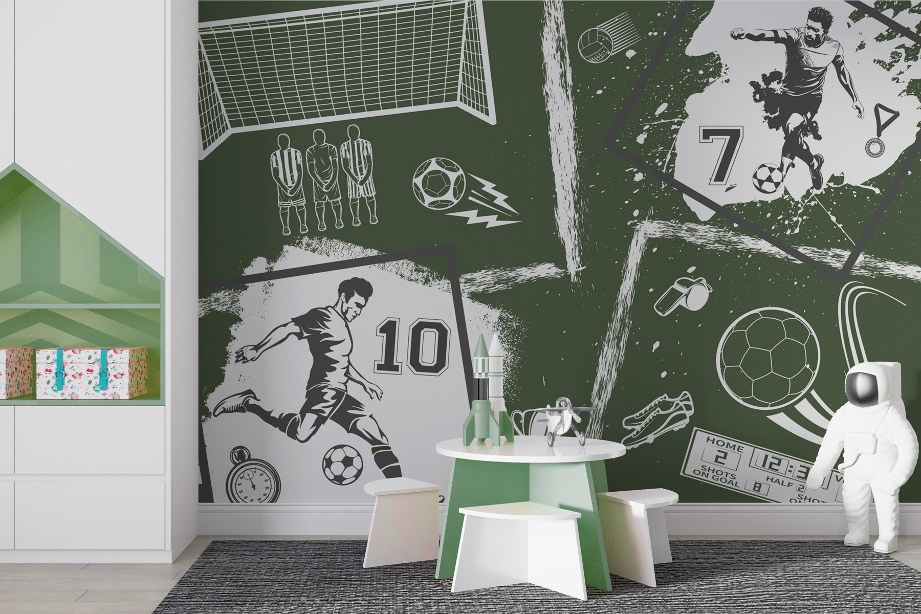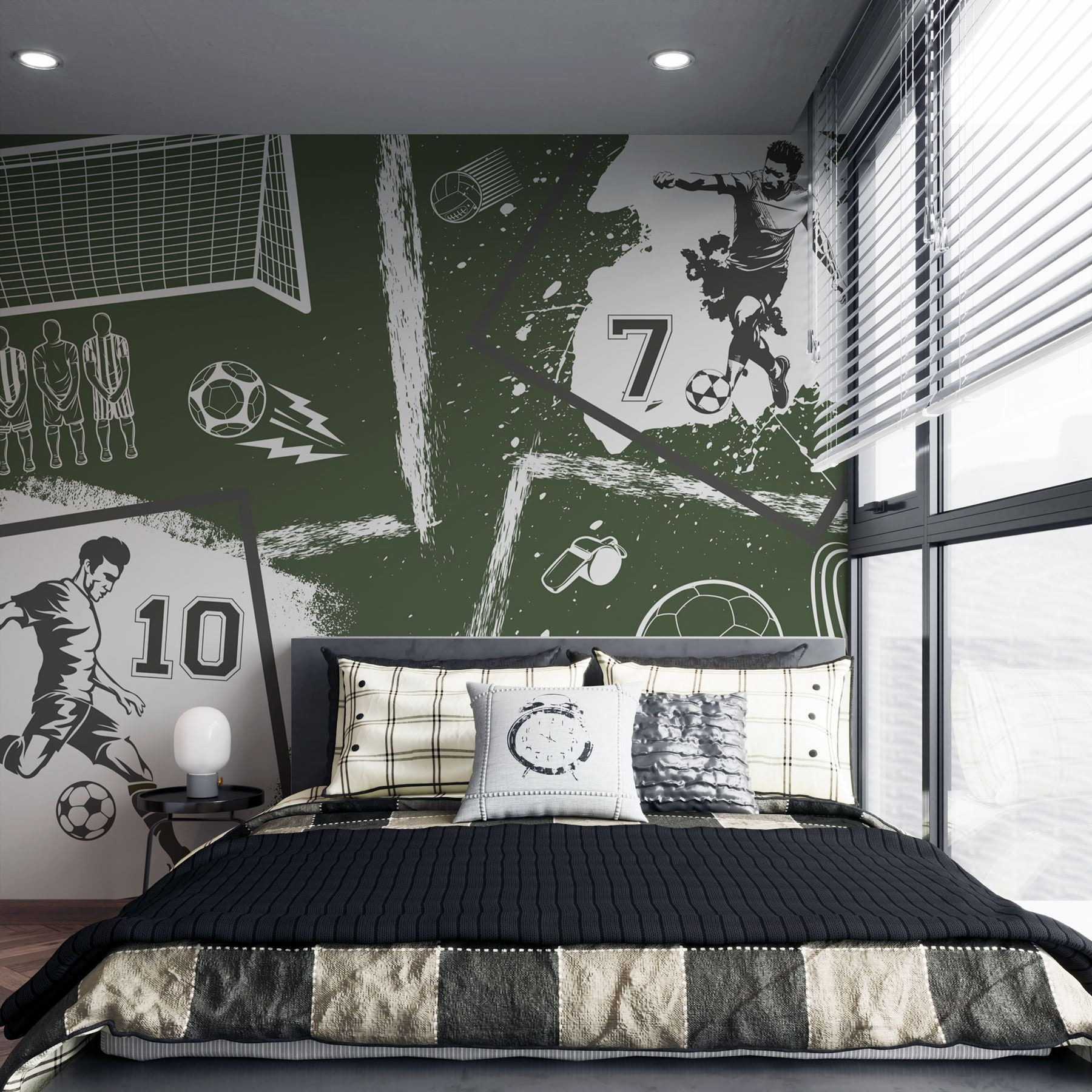 Transformați-vă spațiul cu acest fototapet vibrant, „Colaj de imagini din diverse sporturi”. Este ca și cum ați avea emoția jocului chiar în sufrageria dvs.! Imaginați-vă: prietenii adunați, cu ochii lipiți de detaliile acțiunii fotbalistice, pantofi, trofee și… oh, acela este fluierul arbitrului? Fiecare element spune o poveste despre munca în echipă, pasiune și acele momente tensionate când mingea este pe punctul de a intra în poartă. Perfect pentru pasionații de sport sau pentru oricine apreciază o doză bună de energie, acest mural aduce toată emoția fără a fi nevoie de un arbitru. Spuneți adio pereților plictisitori – este timpul să vă îmbunătățiți decorul!