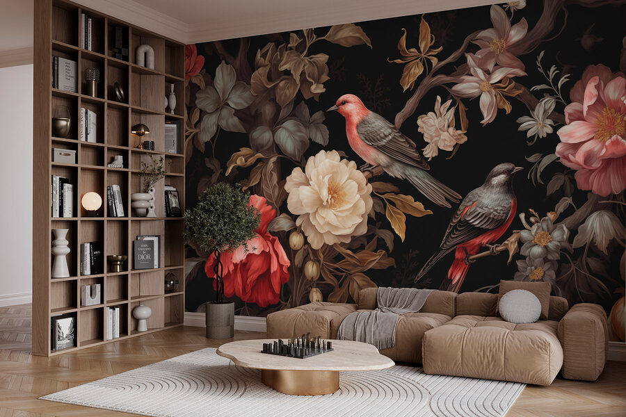 Imaginați-vă că pășiți într-o cameră în care frumusețea naturii dansează pe pereți. Această pictură murală, care prezintă păsări fermecătoare cocoțate printre flori luxuriante, adaugă o notă de fantezie și încântare. Florile vibrante și culorile bogate invită la căldură, făcând orice spațiu să pară viu. Imaginați-vă o după-amiază confortabilă, sorbind ceai în timp ce lumina soarelui filtrează, aruncând umbre jucăușe. Este ca și cum ai aduce o grădină secretă în interior – perfect pentru cei care iubesc decorul unic. Fie că este într-un living sau într-un colț de lectură, această pictură murală șoptește povești despre eleganța naturii, transformând fără efort pereții într-o pânză a bucuriei.
