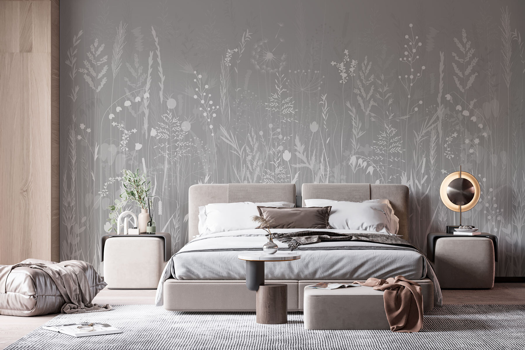 Transformați orice spațiu cu acest tapet uimitor, cu un fundal gri de vis, împodobit cu ierburi și flori delicate. Imaginați-vă că pășiți într-o pajiște liniștită de fiecare dată când intrați în cameră – ce revigorant! Designul subtil în acuarelă adaugă o notă delicată, creând o atmosferă calmă. Este perfect pentru zone de living confortabile sau dormitoare liniștite, permițându-vă să evadați în natură fără a părăsi casa. În plus, este un excelent subiect de conversație – gândiți-vă doar la poveștile împărtășite la o cafea! Iubitorii de natură și pasionații de decor vor fi fermecați, aducând un strop din frumusețea naturii în interior, fără a fi nevoie să udați plantele!