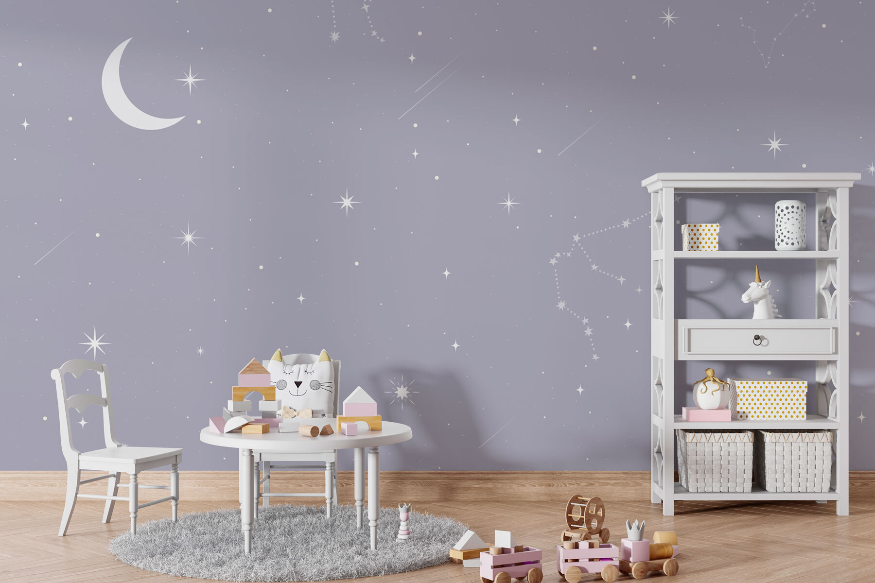 Transformați orice cameră într-o evadare de vis cu pictura murală “Moon and Stars in the Sky”. Este ca și cum ai avea o felie din cerul nopții chiar la tine acasă – perfect pentru privitorii de stele sau pentru oricine are nevoie de puțină magie în viața sa. Imaginați-vă că vă încolăciți în pat, priviți strălucirea blândă a lunii și vă lăsați mintea să rătăcească. Copiilor le va plăcea la nebunie, transformând spațiul lor într-o aventură celestă. În plus, este un bun început de conversație pentru oaspeți. Cine nu ar vrea să vorbească despre frumusețea universului? Decorativ și reconfortant, este un mod simplu de a crea o atmosferă confortabilă.