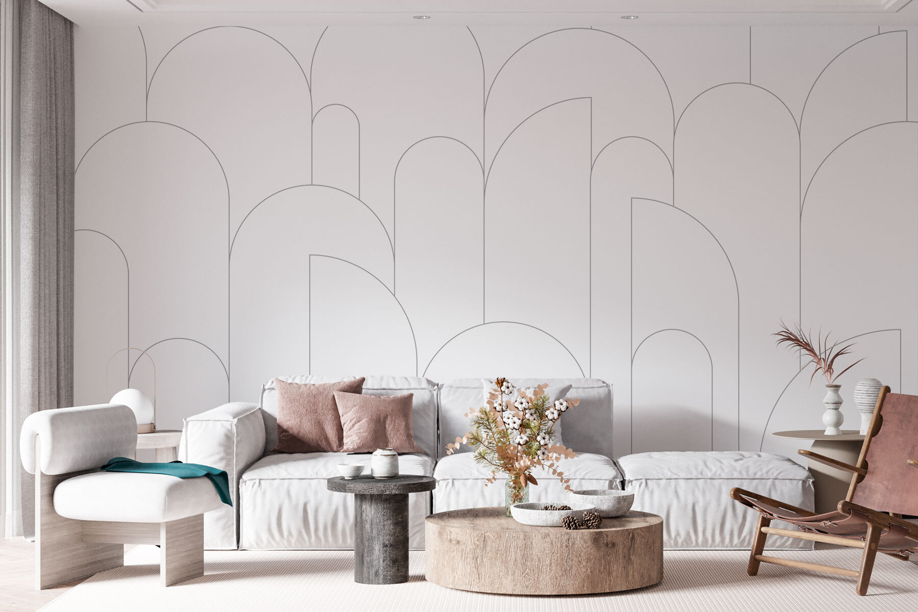Formele jucăușe dansează pe perete, stârnind curiozitatea și conversația, în timp ce schema de culori minimalistă păstrează echilibrul. Fie că este vorba de un living sau de un birou acasă, acesta creează cadrul perfect pentru creativitate. Imaginează-ți cum ar fi să-ți primești prietenii, cu un pahar în mână, având această frumusețe ca fundal. Un fototapet care nu numai că decorează, dar și invită la povești și râsete – ce nu-ți place?