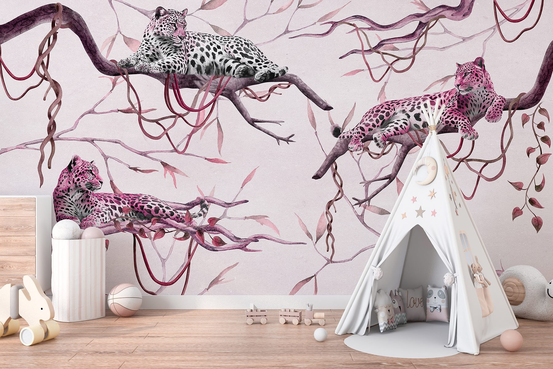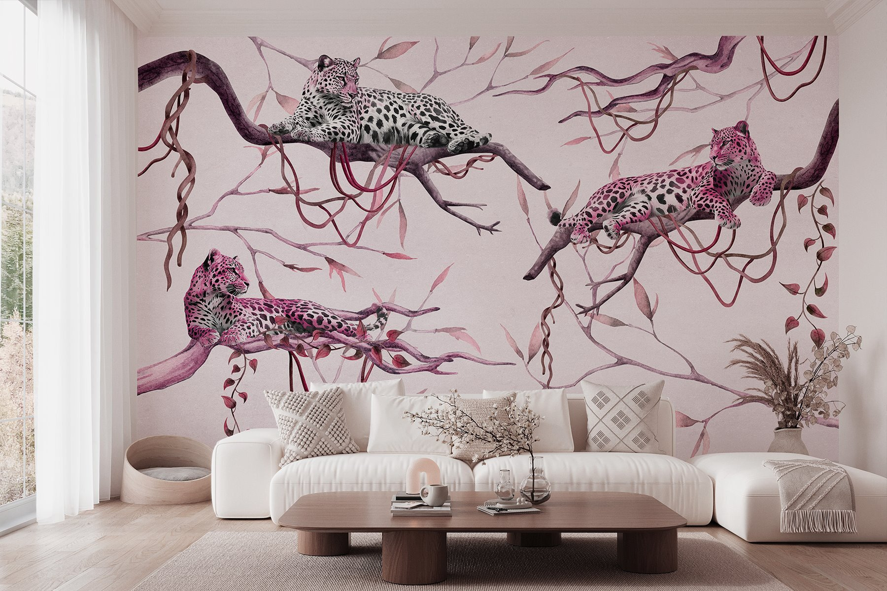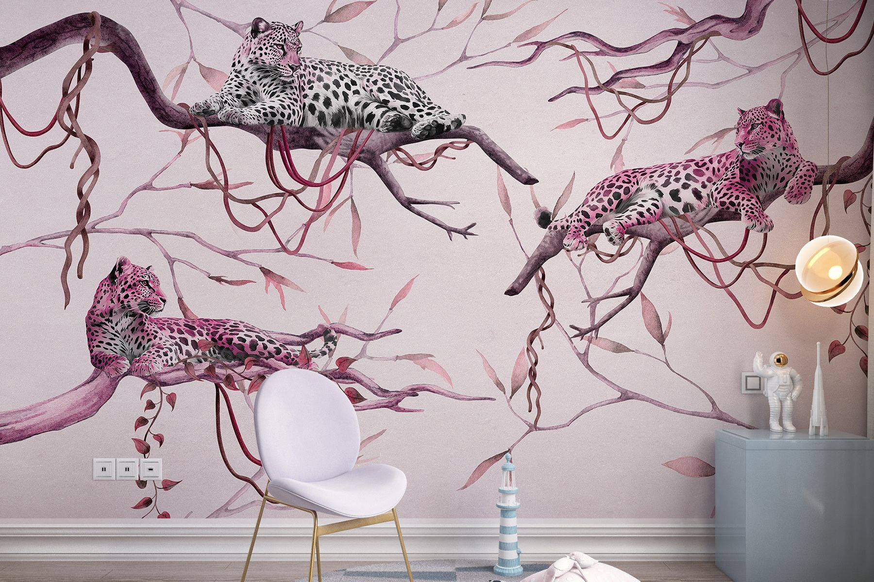 Transformați-vă spațiul într-un refugiu sălbatic cu acest tapet uimitor, care prezintă un grup fermecător de leoparzi care se relaxează pe o ramură de copac. Aceste frumuseți pătate știu clar cum să se relaxeze și aduc o atmosferă relaxată care poate înveseli orice cameră. Imaginați-vă că vă treziți în fiecare dimineață cu această priveliște – așezați-vă confortabil cu o cafea și simțiți cum calmul vă cuprinde. Culorile delicate și detaliile complexe vă dau senzația că aveți un strop de tropice chiar acasă. Perfect pentru iubitorii de animale sau pentru oricine dorește un element decorativ unic. Așadar, nu ezitați – lăsați aceste leoparde să aducă un strop de sălbăticie în interiorul casei dvs.!