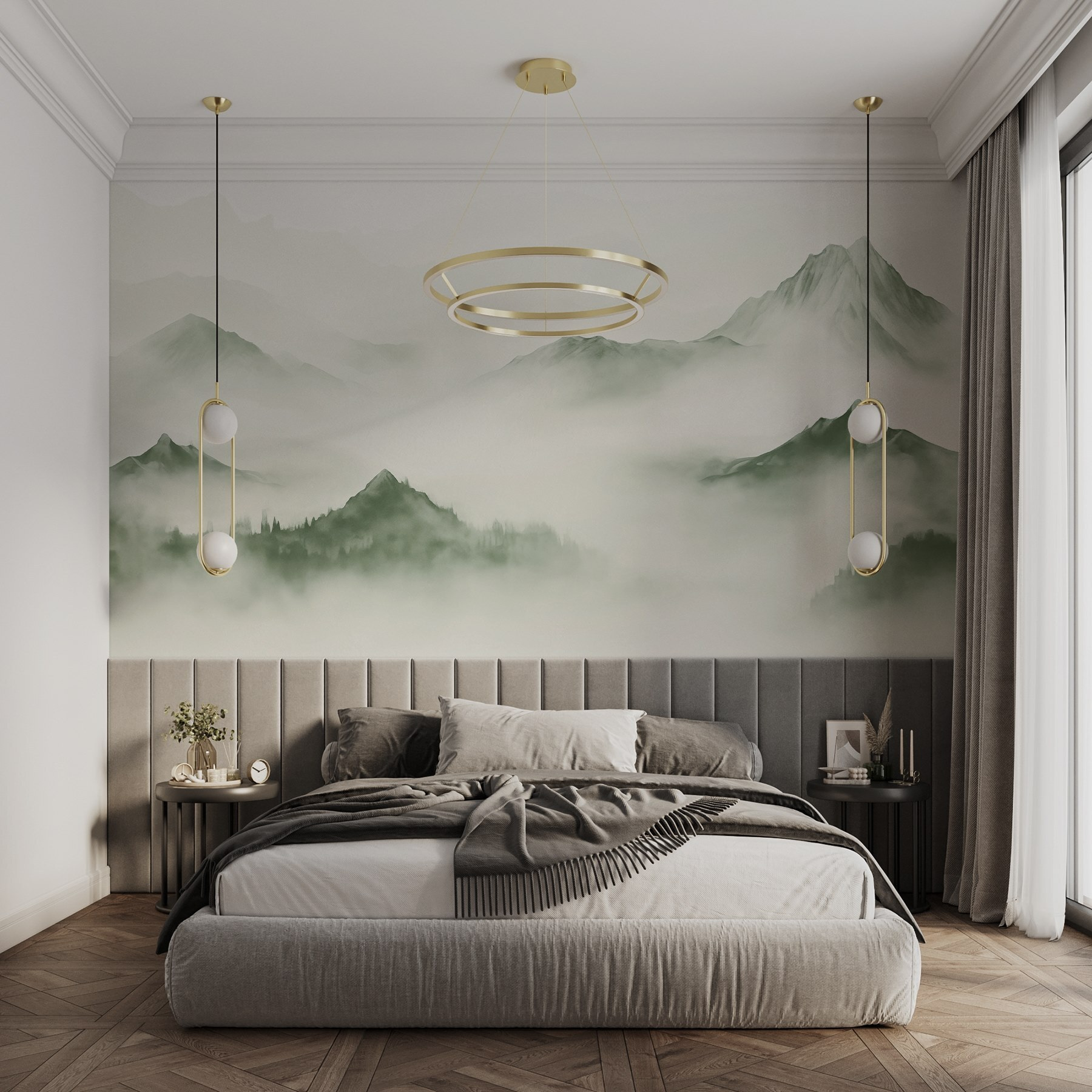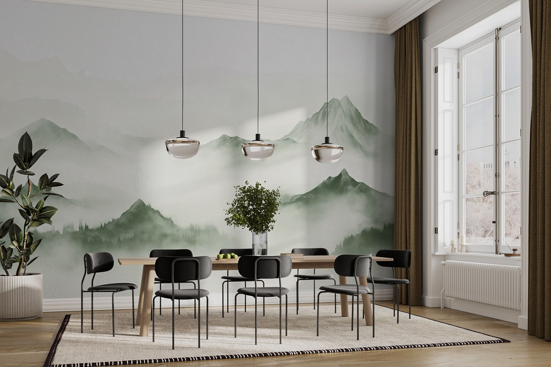 Transformați-vă pereții într-un refugiu liniștit cu muralul „Foggy Mountain Landscape”. Imaginați-vă că intrați într-o cameră și simțiți că ați pășit într-o dimineață liniștită și ceață de munte. Verdele moale și contururile încețoșate ale vârfurilor creează o senzație de calm, perfectă pentru relaxare după o zi lungă. Este aproape ca și cum munții șoptesc secrete, invitându-vă să respirați adânc și să vă relaxați. Prietenii ar putea chiar să creadă că aveți o cabană ascunsă în pădure! Acest mural nu este doar o decorațiune; el adaugă un strop de liniște naturală vieții de zi cu zi, aducând natura în spațiul dvs. confortabil. Este visător, este liniștitor – cine nu și-ar dori asta? Fie că este în sufragerie sau în biroul de acasă, cu siguranță va stârni conversații și admirație.