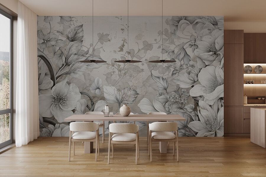 Transformați orice cameră cu frumusețea captivantă a „Delicate Blooms in Soft Grayscale Hues” (Flori delicate în nuanțe delicate de gri). Acest mural sugerează eleganță, învăluind spațiul într-o îmbrățișare delicată de flori pictate în acuarelă. Imaginați-vă că vă treziți înconjurați de aceste petale delicate care împodobesc pereții, evocând o atmosferă calmă și inspirând creativitatea. Fiecare pensulă spune o poveste, făcându-l perfect pentru un colț de lectură confortabil sau un living elegant. Nu există culori stridente aici, doar nuanțe delicate care dau viață decorului dvs. Este ca și cum ați aduce o grădină liniștită în interior, fără polenul enervant. Nu vă mirați dacă prietenii vor veni în vizită doar pentru a admira magia!