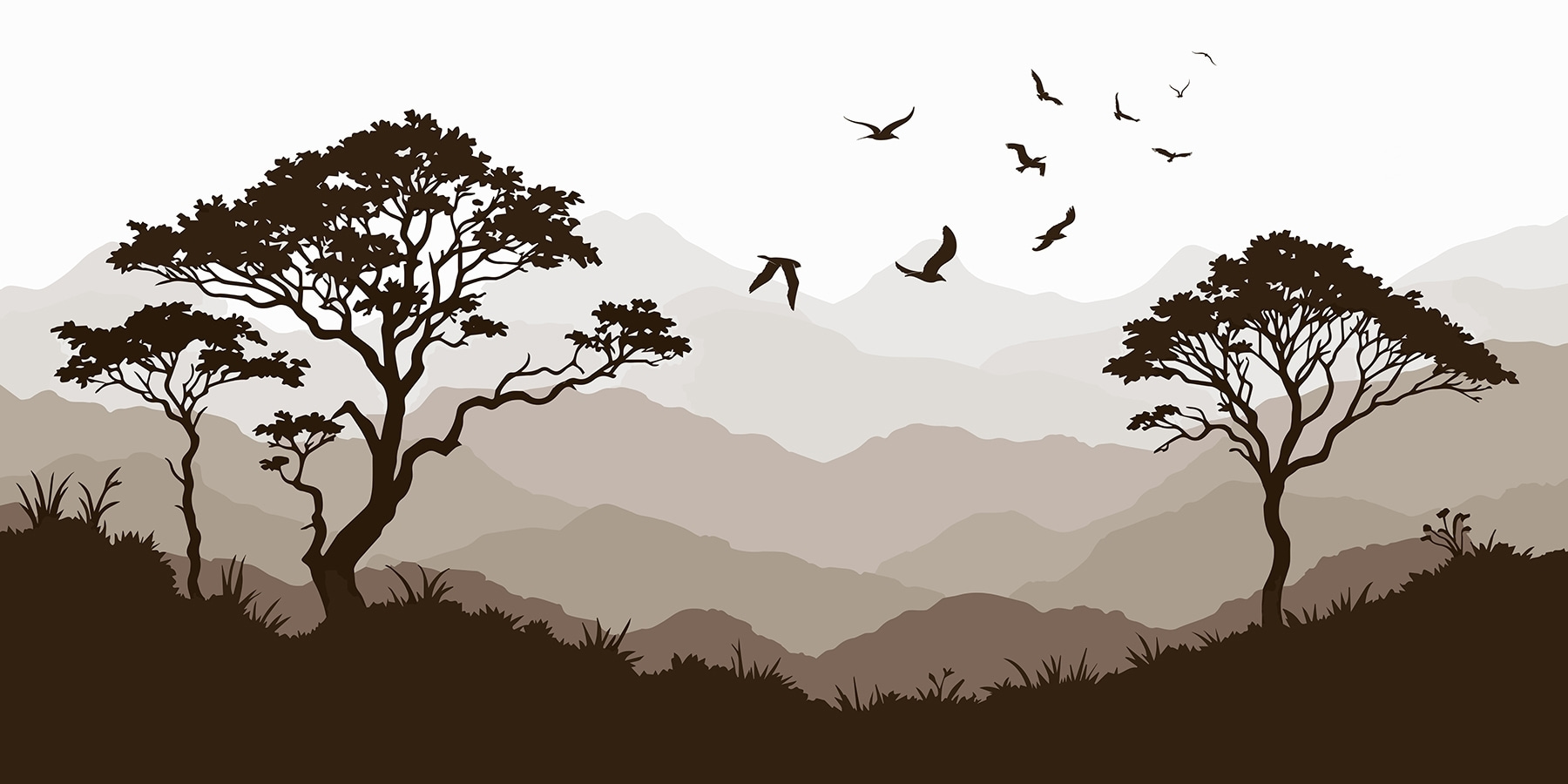 Transformați orice spațiu cu acest mural uimitor cu păsări care zboară deasupra unui lanț muntos liniștit. Este ca și cum ați aduce o bucată de natură direct în camera dvs. – imaginați-vă că vă treziți în fiecare dimineață în această atmosferă pașnică. Nuantele moi de maro și tonurile pământii creează o atmosferă confortabilă, perfectă pentru zile relaxante sau întâlniri pline de viață. Imaginați-vă: prietenii admirând arta, poveștile curgând, în timp ce muralul adaugă în liniște farmecul său. În plus, păsările acelea! Ele aduc un strop de fantezie, amintindu-vă că aventura este întotdeauna la îndemână. Este mai mult decât decor; este o evadare blândă!