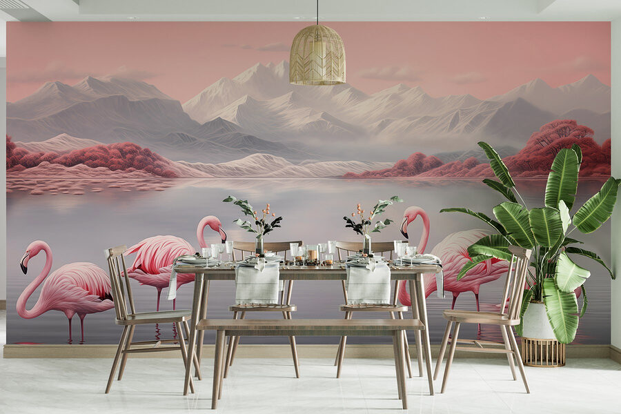 Aduceți o bucățică de paradis în casa dvs. cu acest mural uimitor, care prezintă doi flamingi eleganți stând grațios în apele liniștite. Culorile pastelate delicate și peisajul de vis vă transportă într-o retragere tropicală fără a părăsi vreodată sufrageria. Imaginați-vă că savurați cafeaua de dimineață în timp ce admirați această scenă liniștită – este ca o mică vacanță pentru peretele dvs.! Perfect pentru cei care cred în puterea calmantă a naturii, acest mural transformă orice spațiu într-o mini oază. În plus, cine nu și-ar dori flamingo care să-și etaleze stilul în casa sa? S-ar putea chiar să vă inspire niște mișcări de dans vesele – zic și eu! Nu este vorba atât de perfecțiune, cât mai degrabă de acea atmosferă care vă face să zâmbiți.