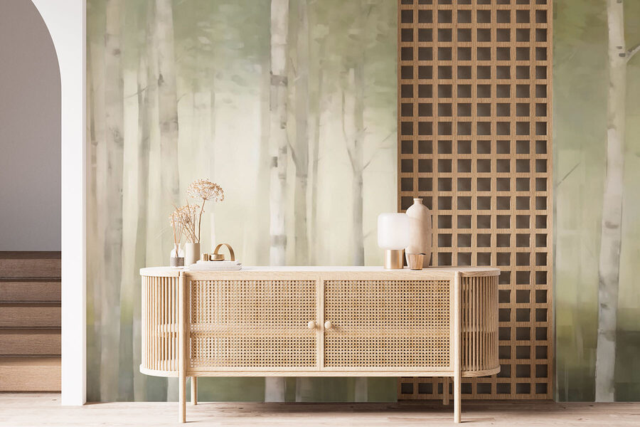 Transformați orice cameră într-un refugiu confortabil în pădure cu acest mural uimitor, care prezintă un grup de copaci liniștiți. Imaginați-vă că pășiți într-o pădure luxuriantă și de vis doar intrând în spațiul dvs. – sună frumos, nu-i așa? Culorile moi și texturile delicate evocă o senzație de calm, perfectă pentru relaxare după o zi lungă. În plus, vă va impresiona prietenii – cui nu-i place atmosfera inspirată de natură? Gândiți-vă, nu aveți nevoie de cizme de noroi! Fie că este vorba de sufragerie sau de un colț liniștit de lectură, acest mural aduce natura în interior, creând o evadare revigorantă de fiecare dată când îl privești.