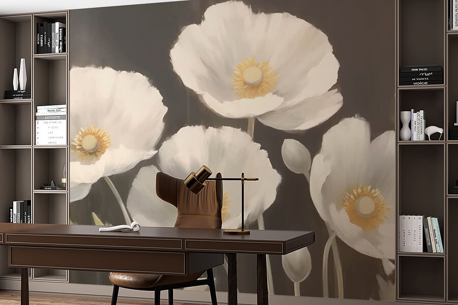 Pregătiți-vă să aduceți un strop de natură în interiorul casei cu acest tapet uimitor, decorat cu flori albe delicate. Este ca și cum ați păși într-o grădină liniștită de fiecare dată când intrați în cameră. Tonurile delicate, discrete, combinate cu acele pete vesele de galben din centrul fiecărei flori? Oh, sunt pur și simplu încântătoare! Imaginați-vă că savurați cafeaua de dimineață în timp ce vă bucurați de strălucirea acestor frumuseți. Nu este doar un decor, ci un subiect de conversație. Prietenii se vor întreba dacă ați angajat un pictor sau dacă ați cultivat în mod magic un perete de flori peste noapte. Perfect pentru a face orice spațiu să pară calm și primitor!