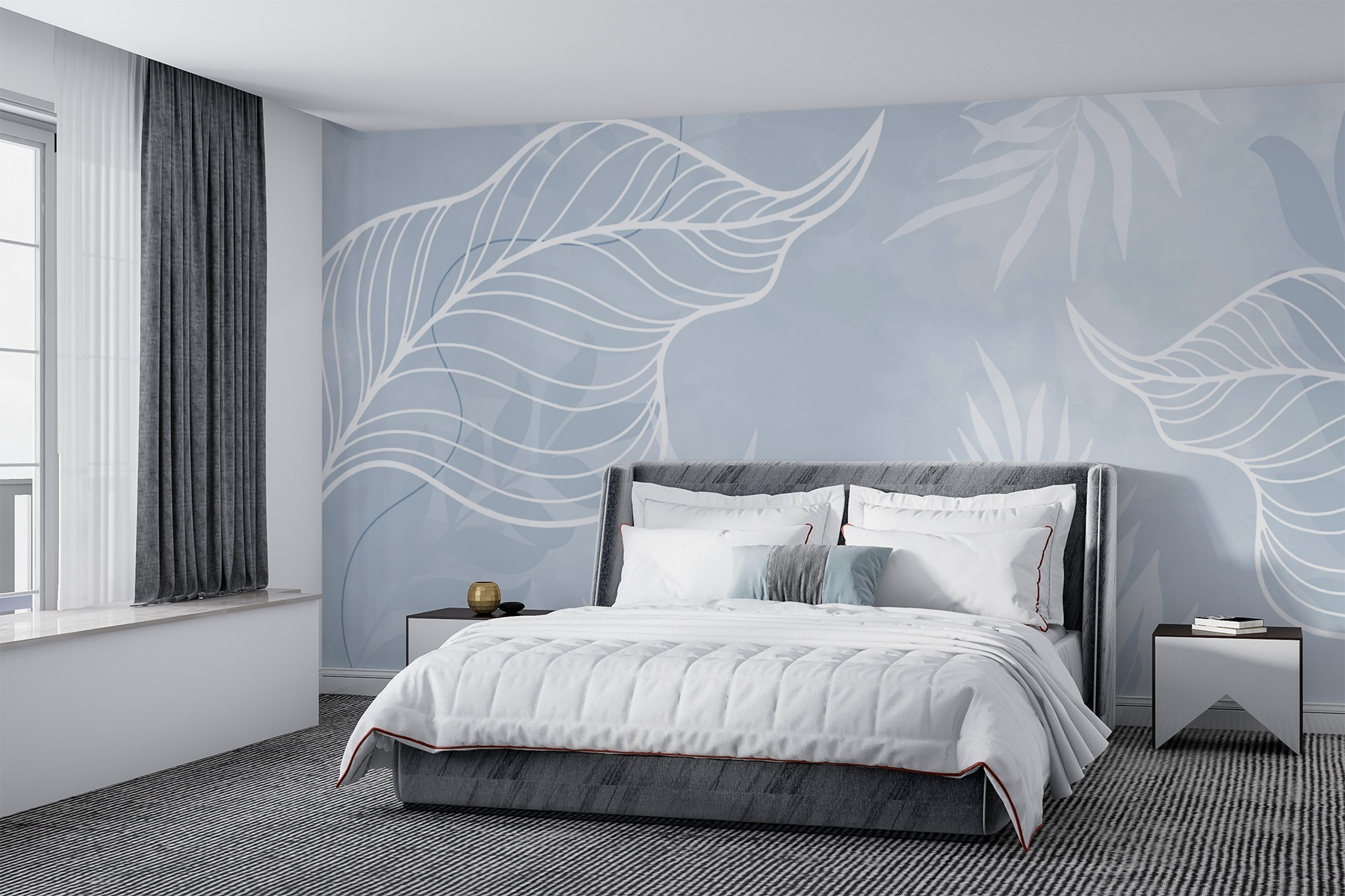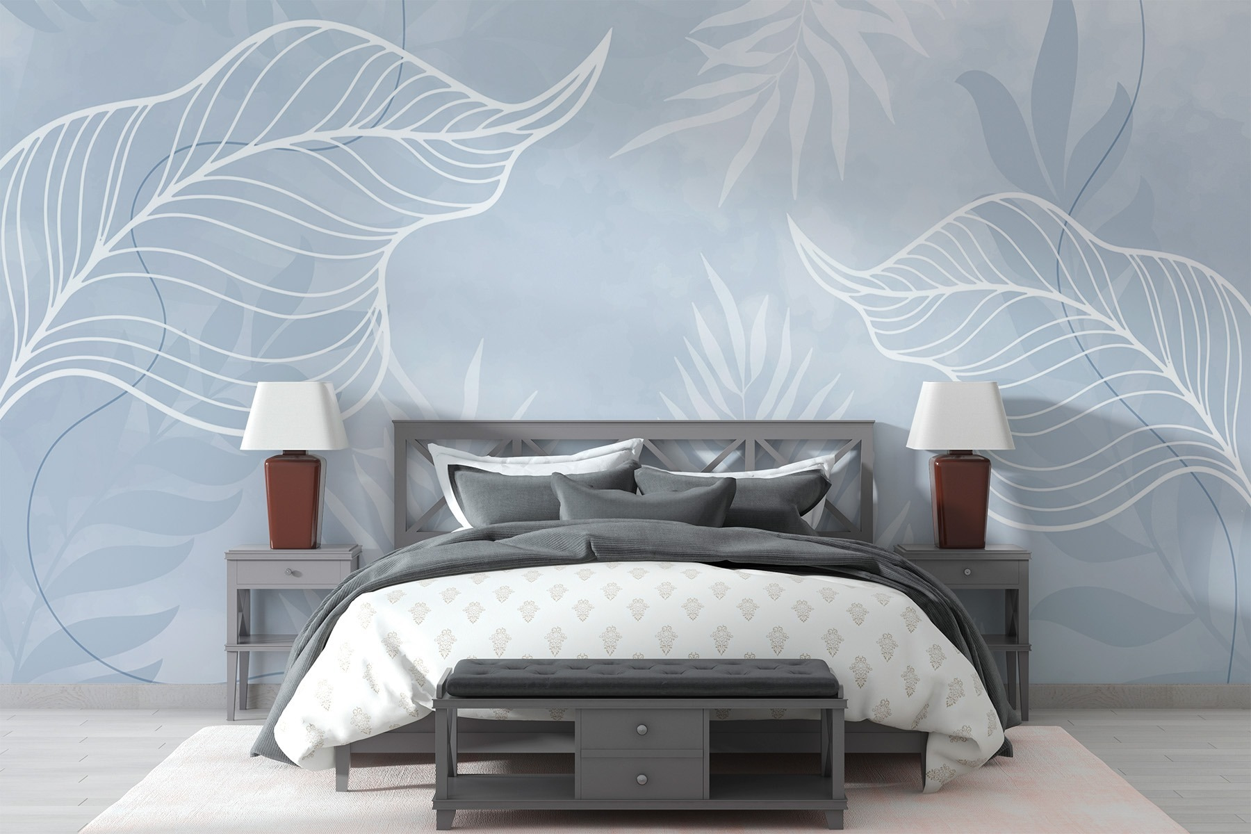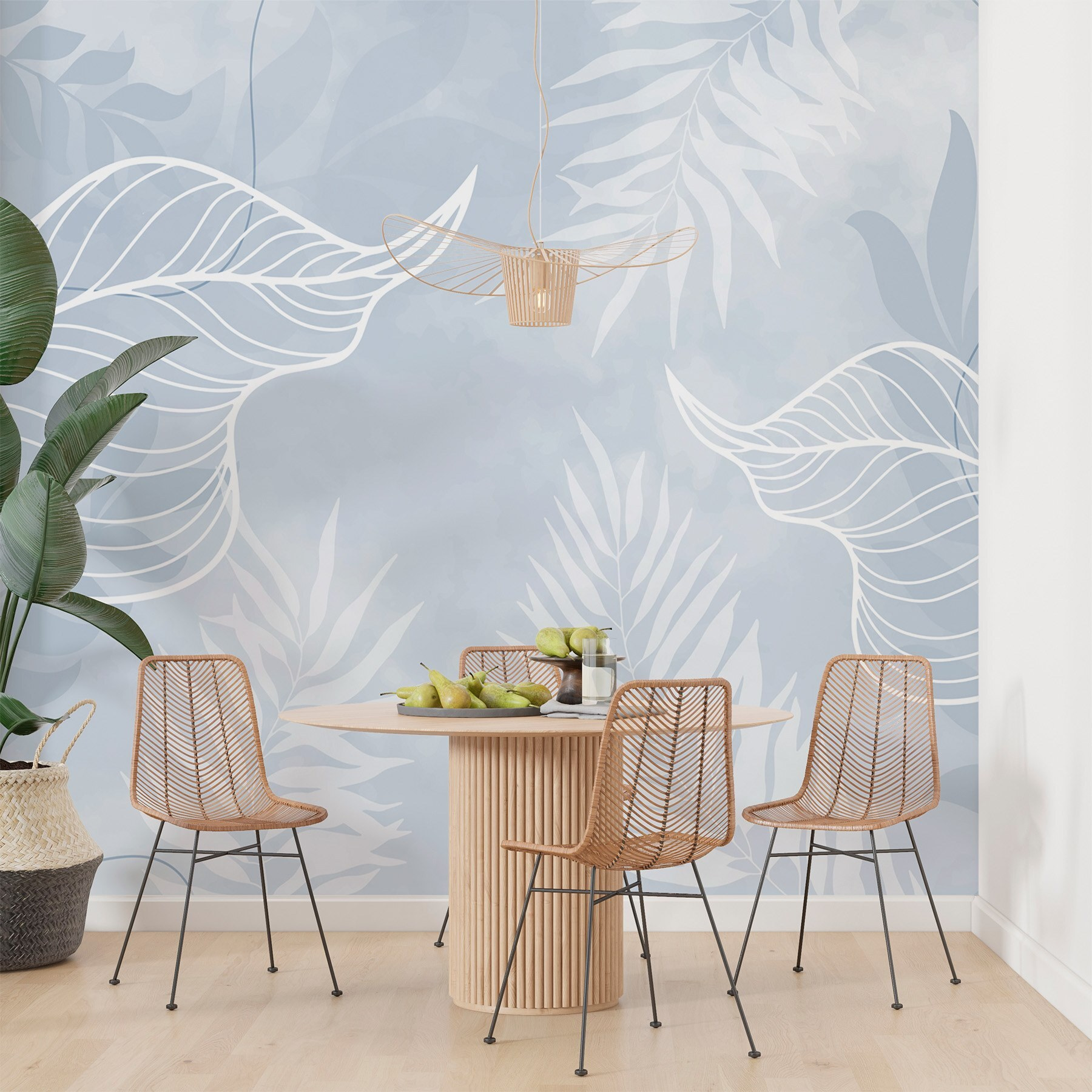 Transformați-vă spațiul într-un refugiu liniștit cu Fototapet White Leaves on a Blue Background. Imaginați-vă că pășiți într-o oază senină de fiecare dată când intrați în cameră – acele frunze albe delicate dansează pe un fundal albastru moale, creând o vibrație liniștitoare care se simte ca o briză ușoară într-o zi caldă. Este ca o șoaptă a naturii împrăștiată pe pereții dvs. Perfectă pentru orice zonă, această pictură murală invită la calm, fie că este vorba de un colț de lectură confortabil sau de un dormitor liniștit. Cine nu și-ar dori să se ghemuiască cu o carte bună înconjurat de un astfel de farmec aerisit? Nu este doar decor; este o bucățică de bucurie care înseninează chiar și cele mai tulburi zile.