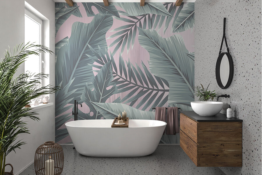 Transformați-vă spațiul într-o oază de liniște cu „Nature’s Tapestry in Soft Hues”. Acest fototapet încântător aduce atmosfera tropicală luxuriantă direct în sufrageria, dormitorul sau colțul confortabil pe care îl iubiți. Imaginați-vă: vă relaxați cu o carte, înconjurați de frunze de palmier de vis, nuanțe delicate de verde amestecate cu tonuri delicate de roz. E ca și cum ați fi într-o vacanță perpetuă, fără arsuri solare.