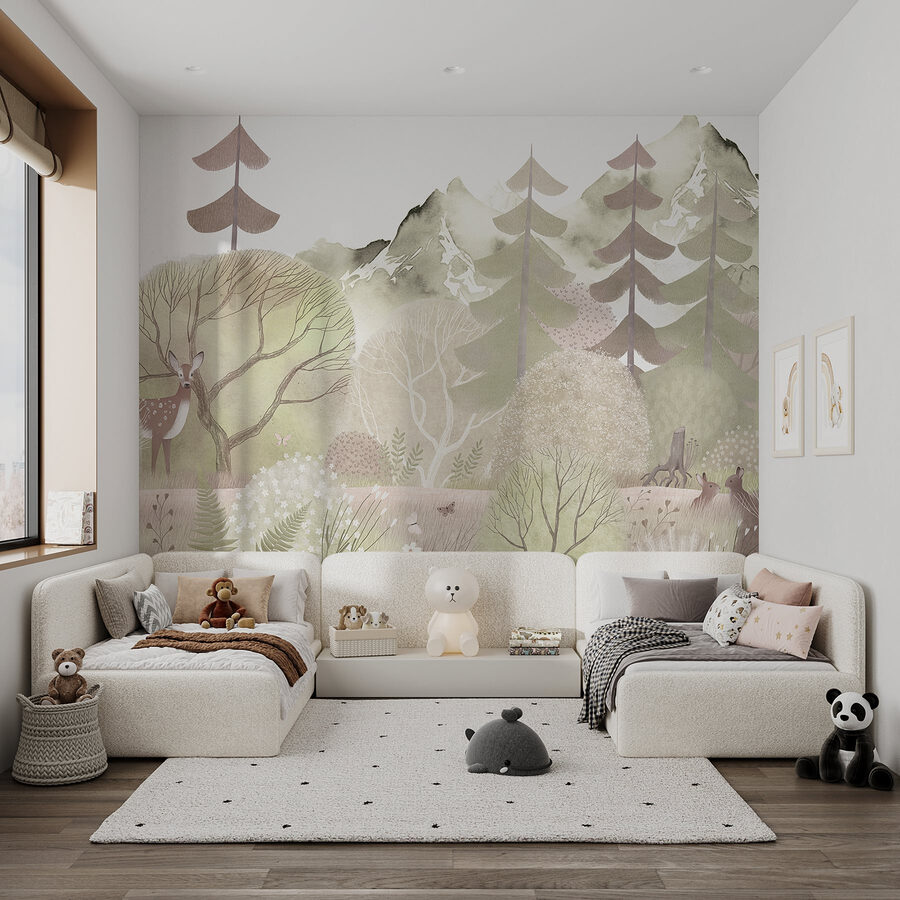 Transformați orice cameră într-o escapadă liniștită în pădure cu acest fototapet încântător „Căprioare în pădure”. Imaginați-vă că pășiți într-o pădure liniștită, unde prezența blândă a căprioarelor și culorile delicate, discrete, creează o atmosferă caldă și primitoare. Fiecare privire aruncată asupra acestui fototapet vă invită să suspinați de relaxare, făcându-l perfect pentru un living confortabil sau un dormitor de vis. Fie că savurați o cafea, visați cu ochii deschiși sau chiar citiți, acest fototapet vă șoptește liniște. Este natura, surprinsă cu măiestrie, care aduce aerul liber direct în casa dvs. Așadar, dați-i drumul, lăsați pereții să spună o poveste!