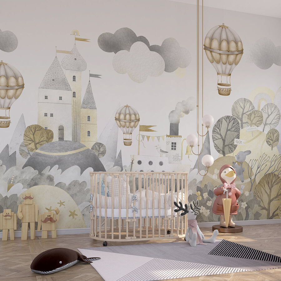 Transformați o cameră într-o aventură fantastică cu acest mural încântător în acuarelă, care prezintă un castel de vis și baloane cu aer cald încântătoare. Imaginați-vă copiii rătăcind prin tărâmurile fermecătoare, imaginația lor zburând la fel de sus ca baloanele. Culorile delicate și detaliile fermecătoare creează o atmosferă confortabilă, dar expansivă, perfectă pentru camere de joacă sau camere pentru copii. Imaginați-vă acele momente liniștite, citind povești sub privirea unui castel prietenos. Veți auzi aproape zumzetul blând al baloanelor și râsetele celor mici în timp ce explorează noul lor regat. Fiecare privire aruncată asupra acestui mural promite o scânteie de bucurie și inspirație. Cine nu ar vrea să se cufunde în acest basm?