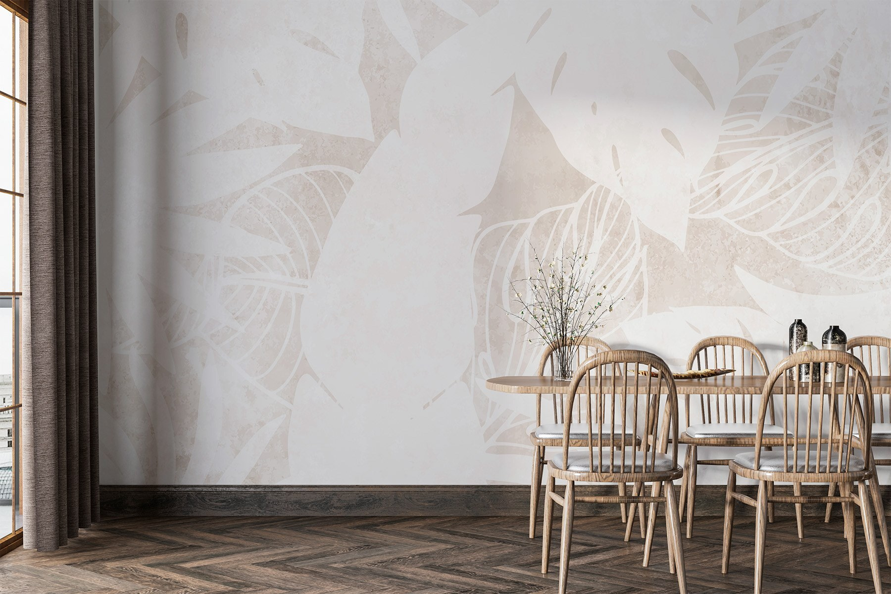Imaginați-vă că intrați într-o cameră care pare o escapadă tropicală, chiar dacă este doar un colț confortabil al casei dvs. Acest mural „White Leaf Pattern” are o atmosferă elegantă și liniștitoare, care inspiră calm – ca o plajă neatinsă, cu nisip alb și fin. Modelele subtile de frunze plutesc pe o suprafață delicată, adăugând dimensiune fără a copleși simțurile. Perfect ca fundal pentru un colț de lectură sau pentru acel perete incomod cu care nu știi ce să faci. S-ar putea chiar să te trezești visând cu ochii deschiși la vacanțe însorite, în timp ce savurezi o ceașcă de ceai. Este ca și cum ai aduce o bucată din paradisul senin direct în viața ta de zi cu zi. Cine nu și-ar dori asta?
