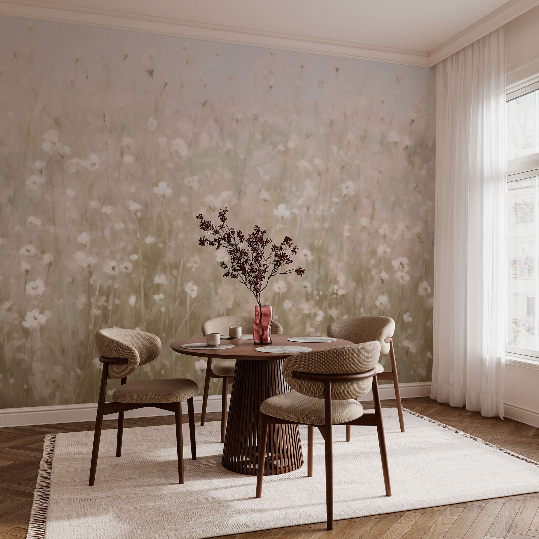 Imaginați-vă că pășiți într-o pajiște blândă de fiecare dată când intrați în camera dvs. “Fototapet Field of Flowers” vă învăluie într-o îmbrățișare moale de flori pastelate, ca o pătură confortabilă a naturii. Culorile atenuate se îmbină perfect, șoptindu-vă povești de primăvară, chiar și în toiul iernii. Imaginați-vă sorbind un ceai în timp ce vă relaxați în acest tărâm al minunilor florale, uitând de agitația de afară. Nu este doar un decor; este un memento zilnic pentru a lua o pauză, a respira și a aprecia lucrurile mărunte – cum ar fi prima floare de primăvară sau o după-amiază leneșă. Transformați-vă spațiul și lăsați florile să vorbească!
