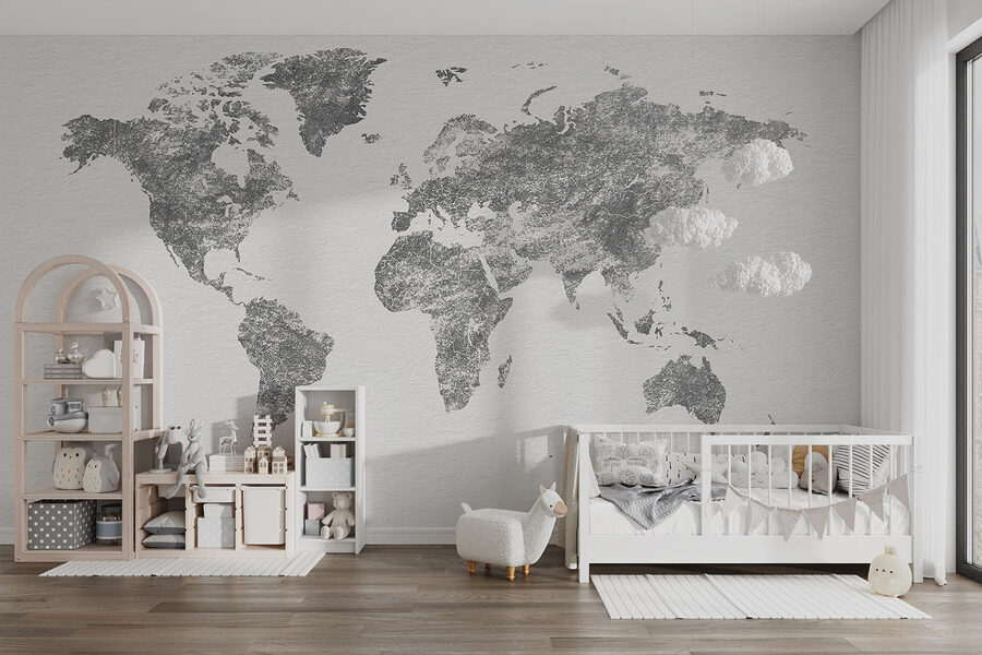 Transformați orice cameră cu această uimitoare hartă a lumii Fototapet Map of the World. Este ca o invitație confortabilă la explorare – nu este nevoie de pașaport. Imaginați-vă că prietenii se adună în jur, trasându-și visele de călătorie cu degetele, în timp ce acest mural stârnește dorința de călătorie și conversații minunate. Tonurile atenuate creează un fundal liniștitor, perfect pentru orice stil, fie că este vorba de minimalism modern sau de farmec boem. Imaginați-vă o bibliotecă cu acest mural ca fundal, unde poveștile prind viață, iar imaginația înflorește. Nu este doar decor; este un portal către aventură chiar la tine acasă.