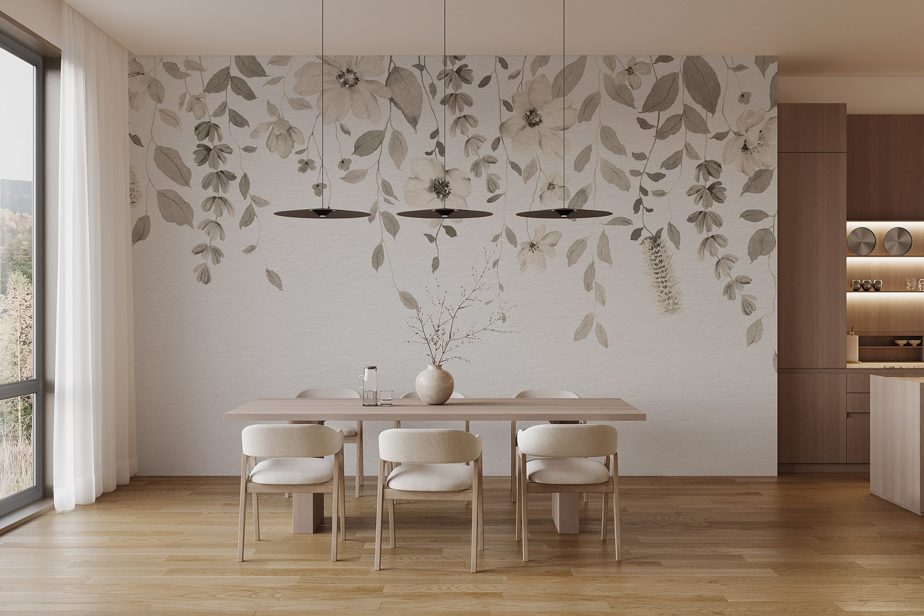 Imaginați-vă că pășiți într-o cameră care seamănă cu o grădină senină, în care nuanțe florale suave vă învăluie simțurile. Această pictură murală, cu tușe delicate de acuarelă, creează o atmosferă liniștitoare care se simte ca o îmbrățișare caldă după o zi lungă. Fiecare petală și frunză dansează grațios, invitând o adiere de aer proaspăt în orice spațiu. Este perfectă pentru un colțișor de lectură confortabil sau un dormitor de vis – doar imaginați-vă cum vă încolăciți cu o carte înconjurați de o asemenea frumusețe. Această pictură murală șoptește liniște și adaugă o notă de natură, transformând un perete obișnuit într-o escapadă minunată.