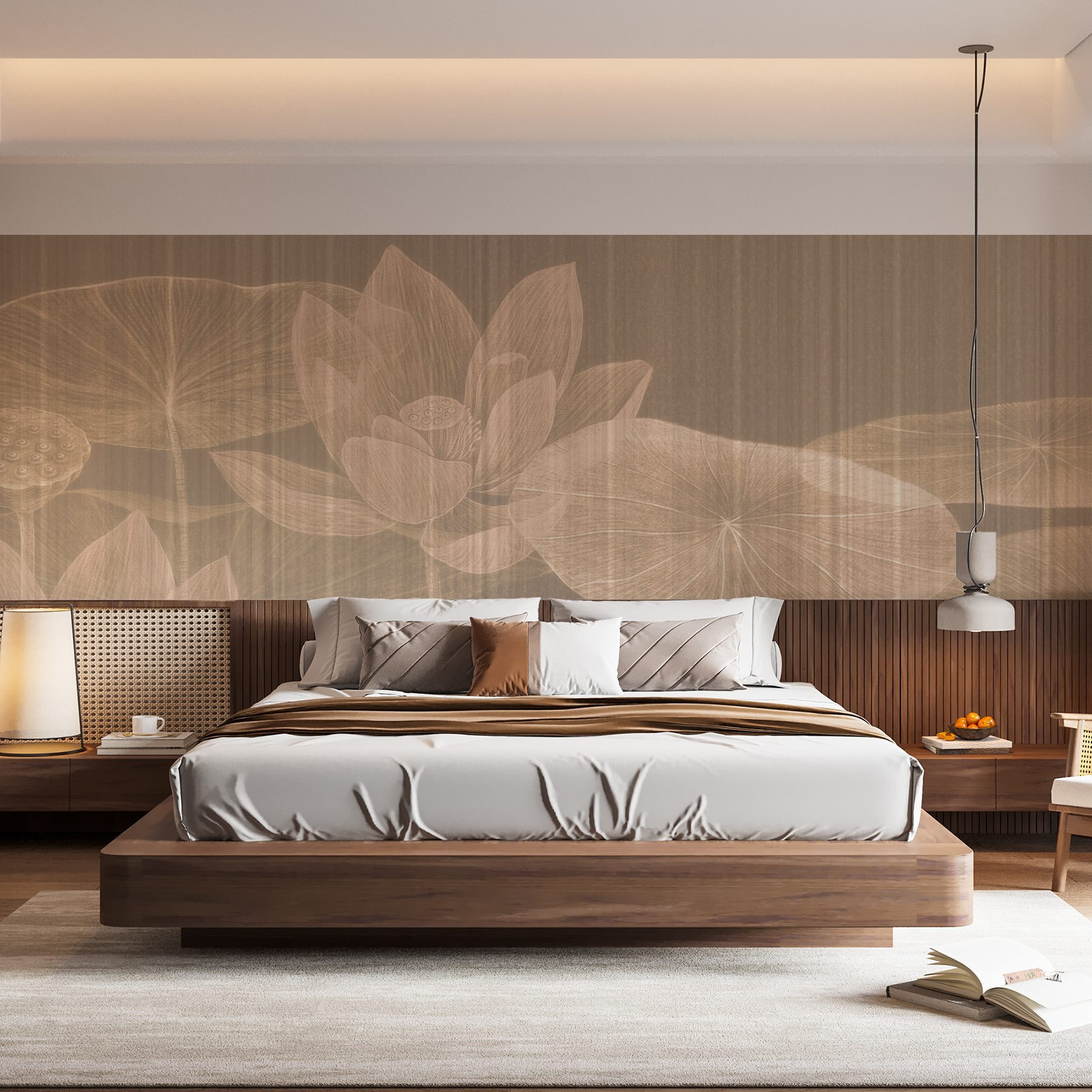 Imaginați-vă că pășiți într-o oază senină de fiecare dată când vă uitați la perete. Această pictură murală, care prezintă flori delicate de lotus plutind pașnic pe o apă liniștită, aduce acest vibe de vis direct în spațiul dvs. Culorile moi și designul liniștitor se simt ca o îmbrățișare blândă pentru ochii tăi. Este ca și cum ai avea o gură de aer proaspăt care îți șoptește calm și liniște.