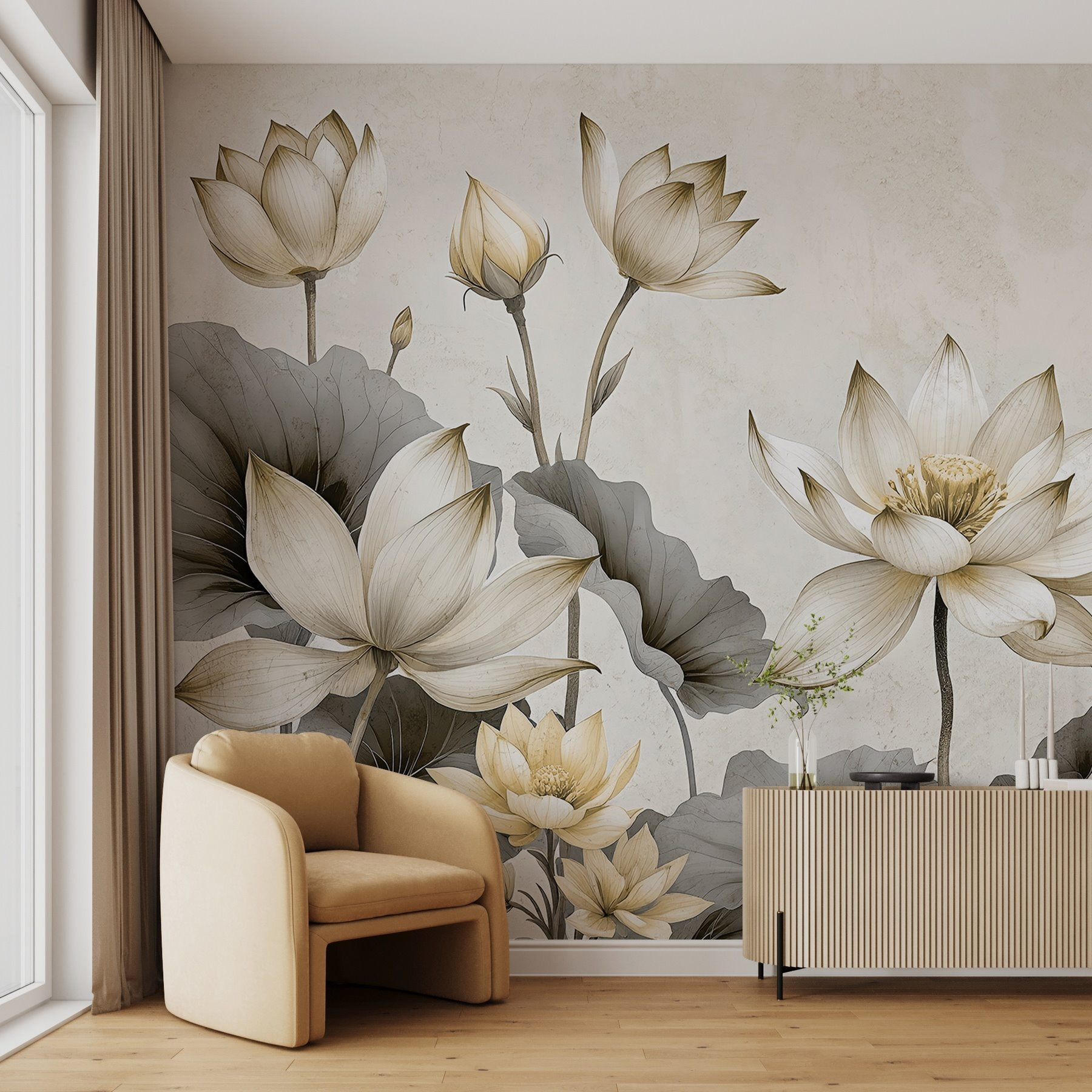 Transformați orice spațiu cu pictura murală “Elegant Blooms in Serene Tones”, unde frumusețea florală întâlnește o paletă calmă. Imaginați-vă că pășiți într-o cameră care se simte ca o grădină senină, unde florile blânde fac o declarație liniștită. Culorile suave creează o atmosferă confortabilă, perfectă pentru relaxare după o zi lungă. Imaginați-vă o după-amiază însorită, sorbind ceai, cu aceste flori uimitoare ca fundal, care vă șoptesc pace. Este ca și cum ai avea o gură de aer proaspăt chiar pe perete. Această pictură murală nu este doar decor; este o bucățică de liniște care adaugă caracter oricărei camere. Nu fi surprins dacă prietenii se opresc și o admiră – este genul acela de piesă!