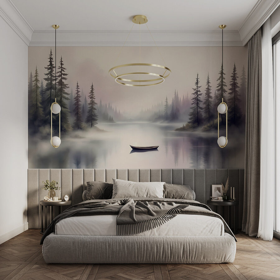 Imaginați-vă că pășiți într-o lume senină cu această pictură murală uimitoare a unei bărci plutind pe un lac liniștit, înconjurată de copaci cețoși. Este ca o evadare secretă chiar pe perete, perfectă pentru atunci când viața devine un pic prea haotică. Culorile moi și reflexiile blânde aduc un sentiment de calm, făcând orice cameră să se simtă ca un refugiu confortabil. Imaginați-vă sorbind cafea în timp ce visați cu ochii deschiși, pierduți în această scenă liniștită. Nu este doar decor – este un moment de prețuit în fiecare zi, invitând căldura și un pic de magie în spațiul tău. Cine nu și-ar dori să se simtă ca într-o escapadă pe malul lacului?