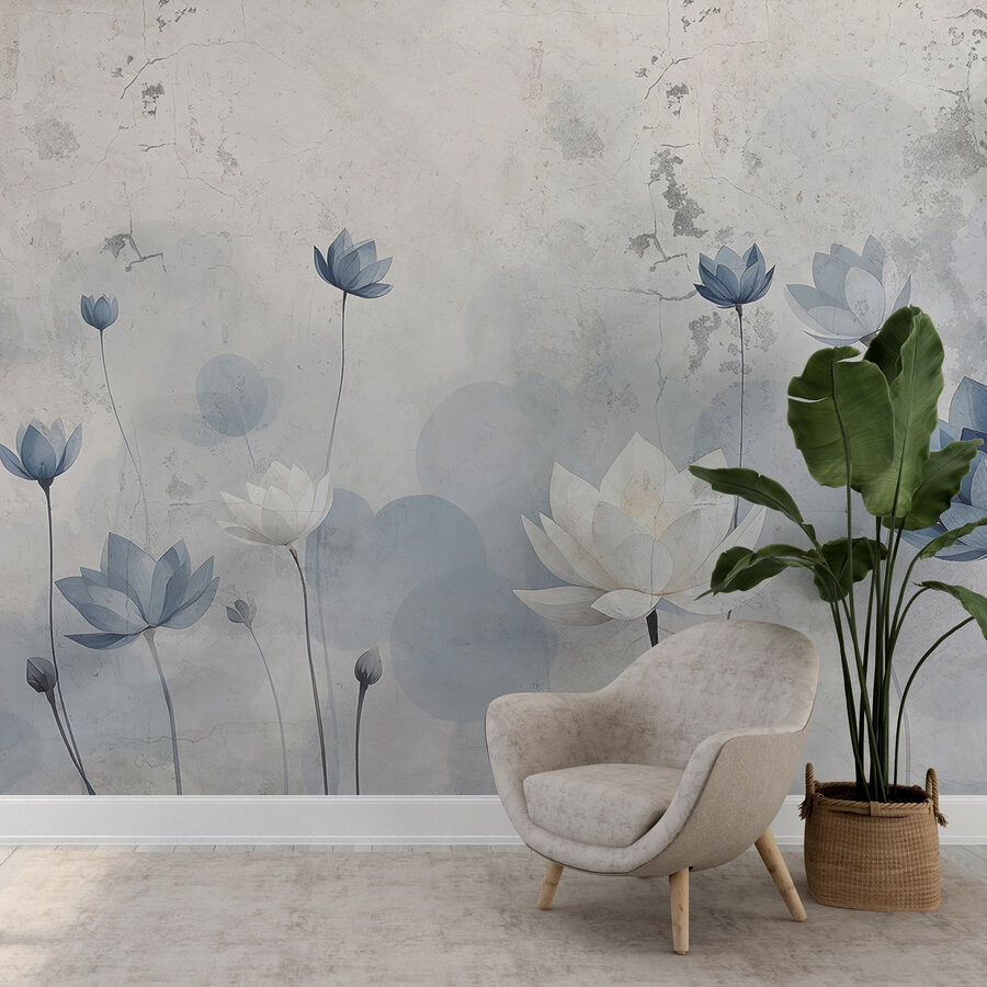 Transformați orice cameră cu această pictură murală încântătoare cu flori delicate care par să danseze de-a lungul pereților. Imaginați-vă că pășiți în fiecare zi într-o oază liniștitoare, înconjurați de nuanțe blânde de albastru și alb. Este ca și cum ai avea o grădină botanică chiar la tine acasă, fără udare și agitație. Prietenii ar putea chiar să vă întrebe dacă aveți un deget verde secret!