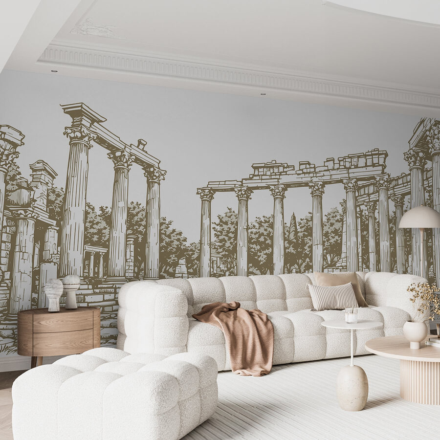 Transformați-vă spațiul cu această pictură murală captivantă care prezintă o structură de piatră uimitoare împodobită cu coloane maiestuoase. Imaginați-vă că intrați într-o cameră în care istoria antică șoptește povești grandioase. Detaliile complicate dau senzația că pășiți într-o galerie în aer liber, invitând lumina caldă a soarelui și briza proaspătă. Imaginați-vă sorbind o cafea în timp ce vă bucurați de seninătatea adusă de această pictură murală. Creează o atmosferă relaxată, perfectă pentru după-amiezele leneșe sau pentru întâlnirile pline de viață. În plus, stârnește conversații – cine nu ar vrea să vorbească despre o astfel de atingere unică în casa lor?