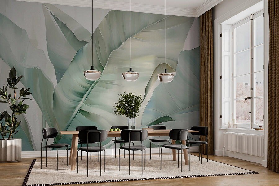 Transformarea unui spațiu poate fi la fel de ușoară ca desfășurarea unor frunze luxuriante în nuanțe blânde. Această pictură murală nu este doar pentru pereți; este ca și cum ai invita o escapadă tropicală chiar în camera de zi. Imaginați-vă sorbind o băutură, cu verdele vibrant fluturând și visând cu ochii deschiși la plajele însorite – fără nisip în pantofi. Culorile blânde creează o atmosferă calmă, ceea ce o face perfectă pentru un colț de lectură confortabil sau o zonă de relaxare. În plus, este ca și cum peretele tău tocmai a primit un filtru demn de Instagram! Cine nu și-ar dori un fundal care să semene cu o mini-vacanță?