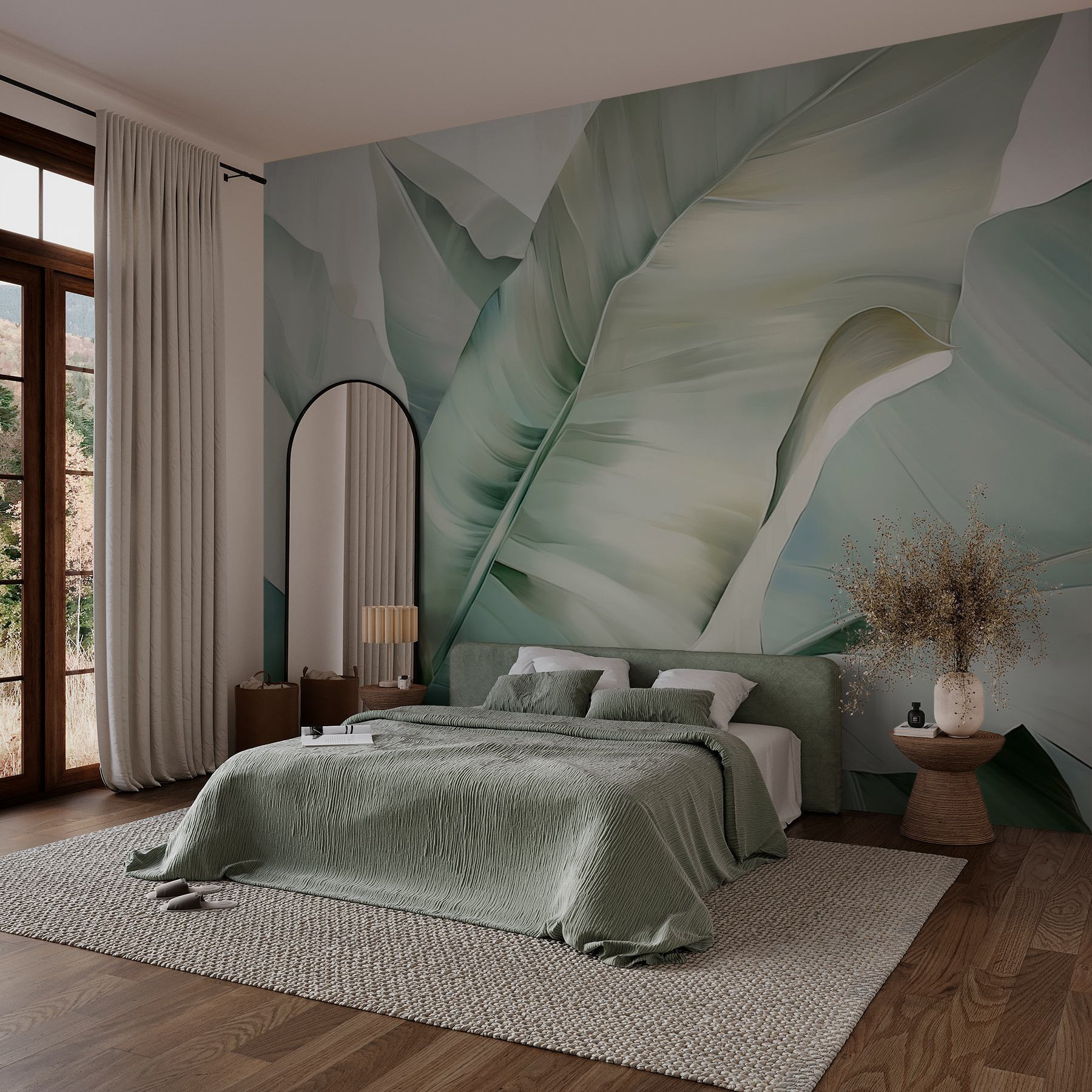Transformarea unui spațiu poate fi la fel de ușoară ca desfășurarea unor frunze luxuriante în nuanțe blânde. Această pictură murală nu este doar pentru pereți; este ca și cum ai invita o escapadă tropicală chiar în camera de zi. Imaginați-vă sorbind o băutură, cu verdele vibrant fluturând și visând cu ochii deschiși la plajele însorite – fără nisip în pantofi. Culorile blânde creează o atmosferă calmă, ceea ce o face perfectă pentru un colț de lectură confortabil sau o zonă de relaxare. În plus, este ca și cum peretele tău tocmai a primit un filtru demn de Instagram! Cine nu și-ar dori un fundal care să semene cu o mini-vacanță?