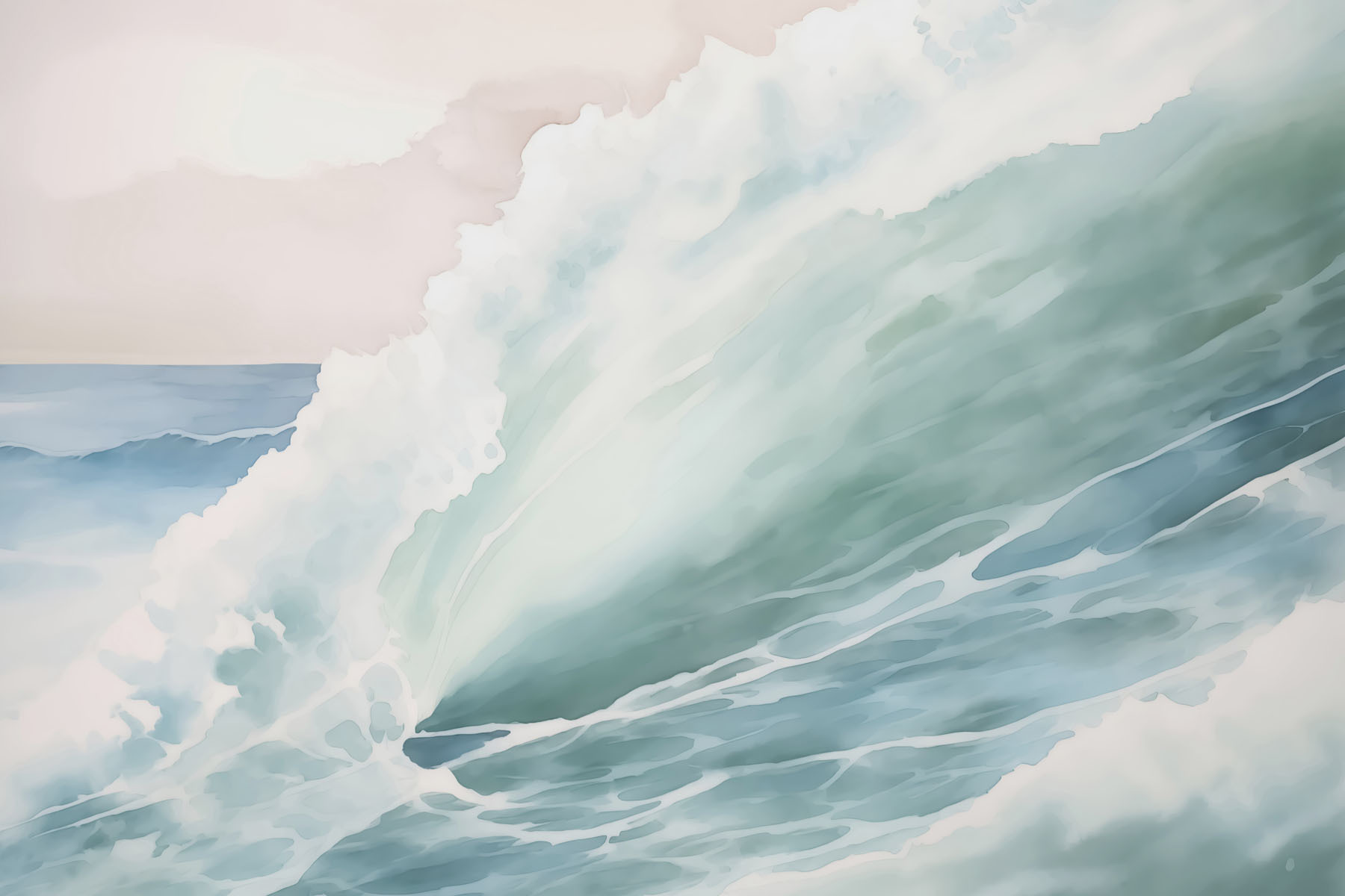 Imaginați-vă că intrați într-un spațiu care se simte instantaneu ca o escapadă pe plajă. Această pictură murală “Val mare în ocean” vă atrage cu albastru și verde blând, ca o mângâiere ușoară a aerului oceanic. Nu este doar o pictură murală; este o stare de spirit. Imaginează-ți cum te așezi în fotoliul tău preferat, cu o băutură caldă în mână, în timp ce valul pare să se rostogolească direct în camera ta, șoptindu-ți povești despre aventurile de pe malul mării. Efectul de acuarelă adaugă un aer visător, perfect pentru a visa cu ochii deschiși sau pur și simplu pentru a evada din agitație. Acesta aduce o felie de natură în interior, făcând din fiecare privire o mini vacanță. Transformați un perete simplu în evadarea dvs. de vis – cine nu și-ar dori asta?