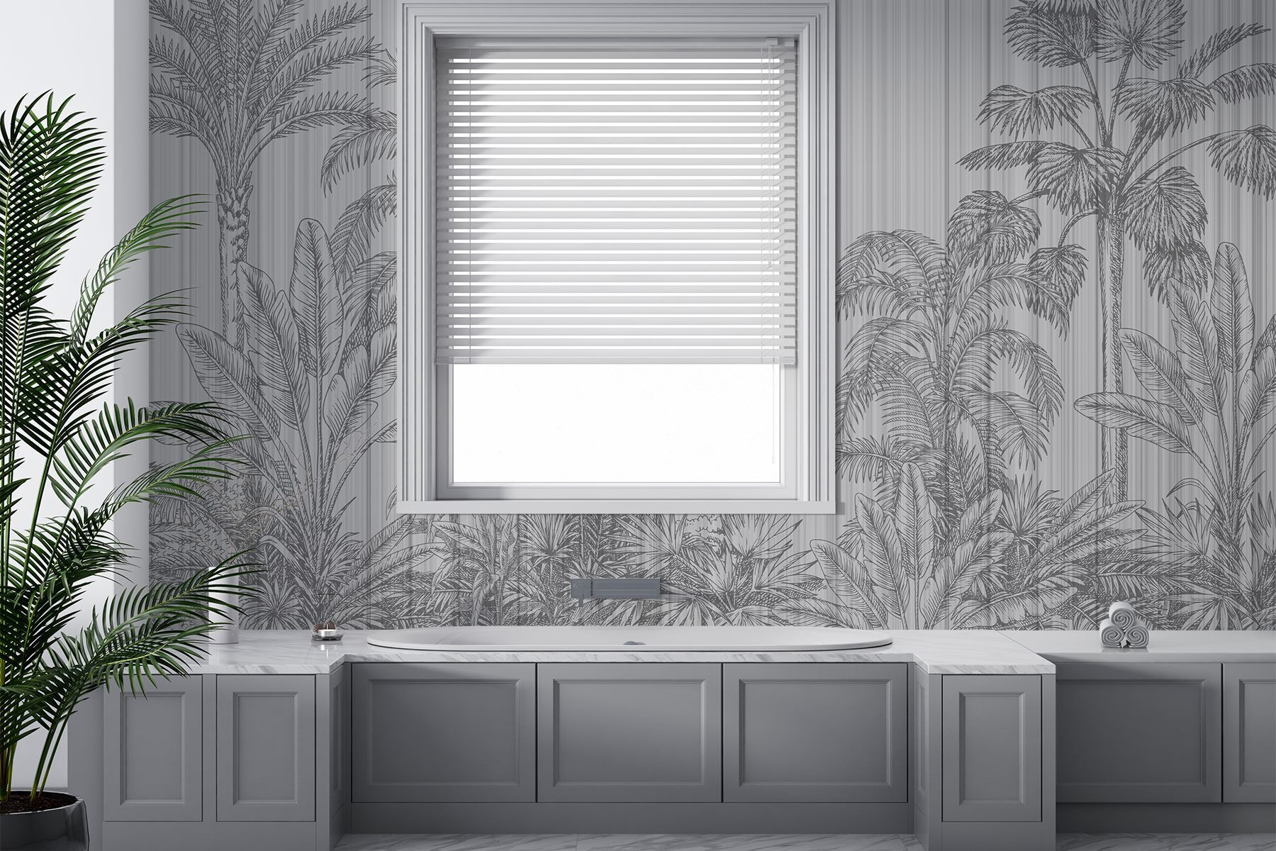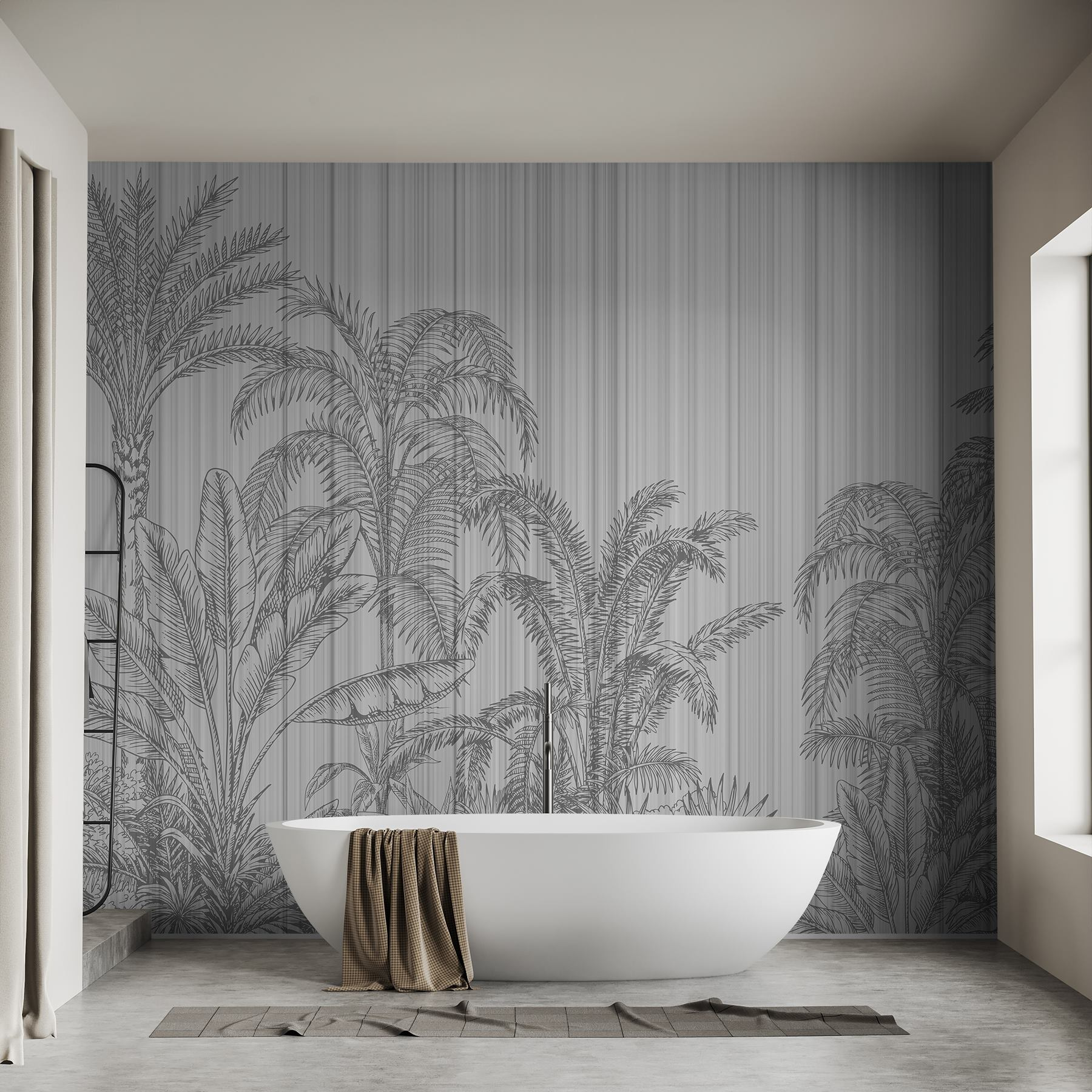 Transformați-vă spațiul cu această pictură murală uimitoare care șoptește “oază tropicală” fără a fi nevoie de protecție solară. Fundalul gri și alb cu palmieri adaugă o notă de rafinament calm. Imaginați-vă că pășiți în camera dvs. și vă simțiți instantaneu ca și cum v-ați afla pe o insulă senină.