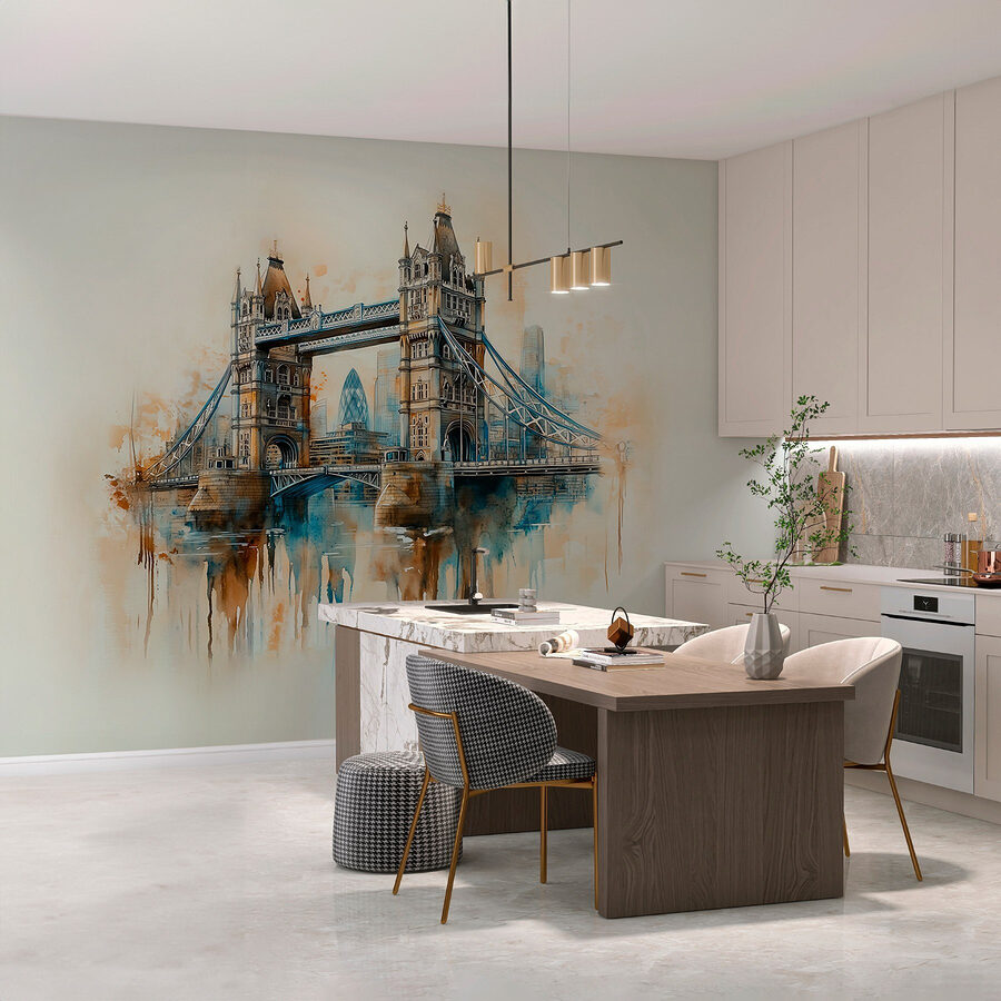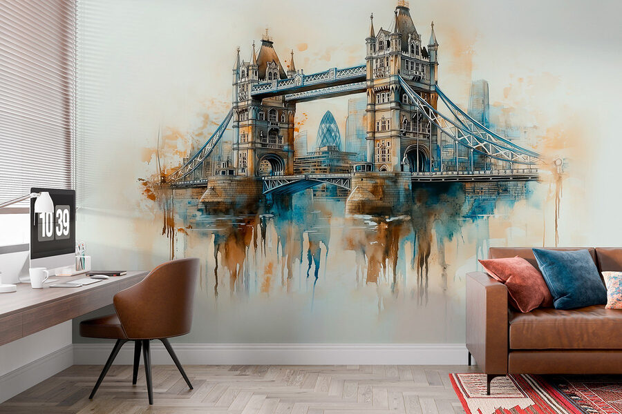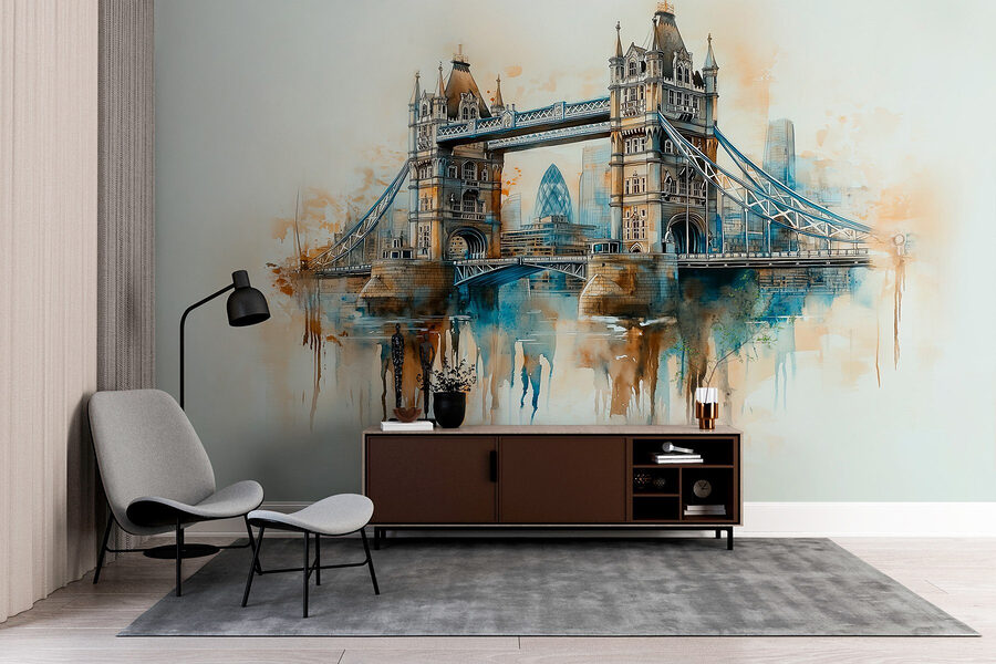 Transformați-vă spațiul cu această pictură murală uimitoare în acuarelă a unui pod, o aluzie încântătoare la viața urbană. Imaginați-vă acest lucru: pășiți în camera dvs. și sunteți întâmpinați de o scenă senină, de vis, care îmbină fără efort culorile și captează farmecul peisajelor urbane. Este ca o mini-vacanță de fiecare dată când treceți pe aici!