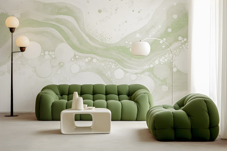 Transformați-vă spațiul cu această pictură murală uimitoare în acuarelă, care îmbină verdele liniștitor și albul liniștit. Imaginați-vă că intrați într-o cameră în care pereții șoptesc relaxare, bucurându-vă de fluxul blând de culori. Este ca o gură de aer proaspăt – perfectă pentru o cameră de zi confortabilă sau pentru un colț liniștit de lectură. Oaspeții se vor opri fără îndoială, poate chiar se vor apleca pentru a admira curbele moi și punctele jucăușe. Nu este doar o pictură murală; ea stârnește conversații și invită la visare cu ochii deschiși. Oferiți pereților dvs. puțină dragoste cu această operă de artă liniștitoare care se simte ca o evadare artistică.