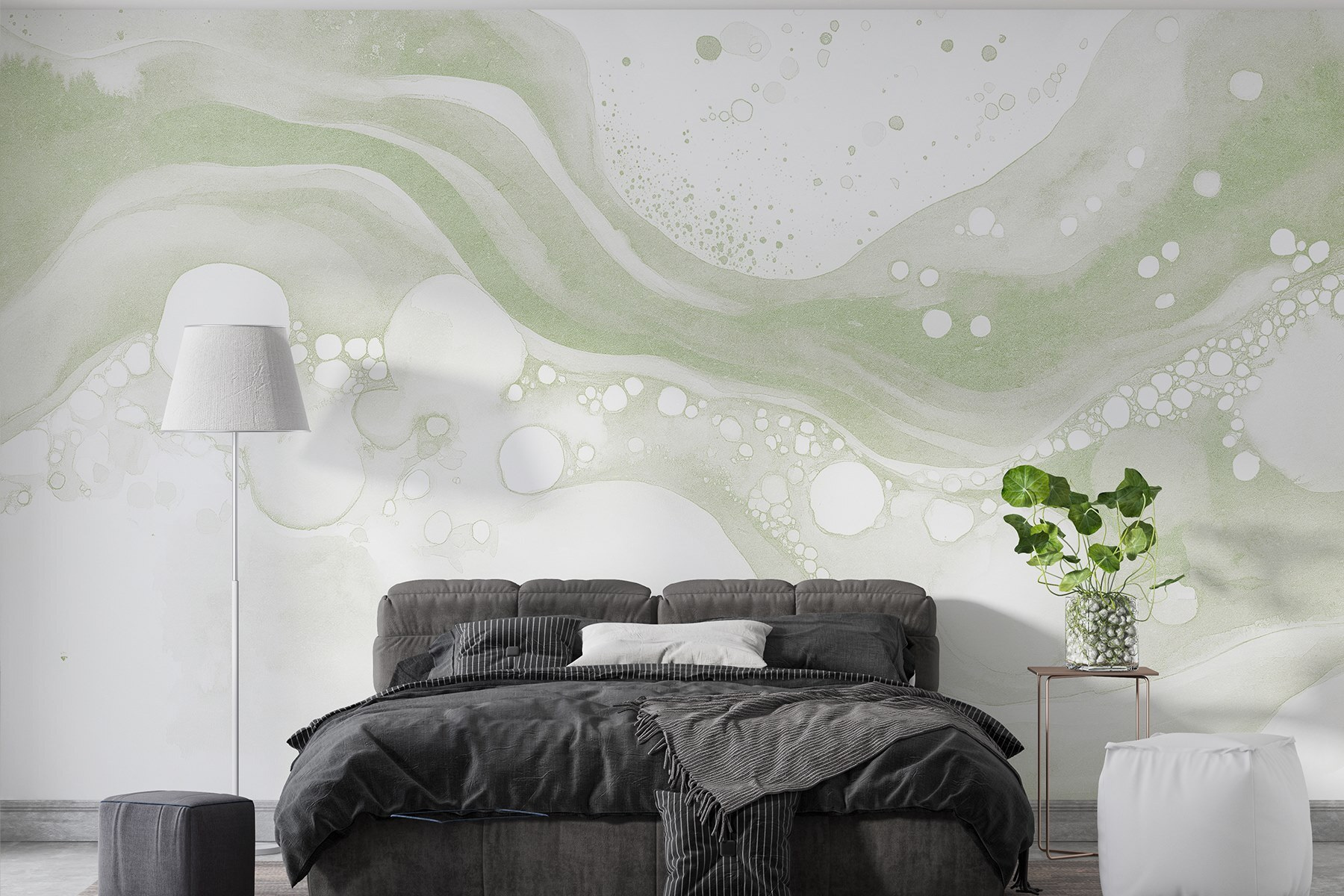 Transformați-vă spațiul cu această pictură murală uimitoare în acuarelă, care îmbină verdele liniștitor și albul liniștit. Imaginați-vă că intrați într-o cameră în care pereții șoptesc relaxare, bucurându-vă de fluxul blând de culori. Este ca o gură de aer proaspăt – perfectă pentru o cameră de zi confortabilă sau pentru un colț liniștit de lectură. Oaspeții se vor opri fără îndoială, poate chiar se vor apleca pentru a admira curbele moi și punctele jucăușe. Nu este doar o pictură murală; ea stârnește conversații și invită la visare cu ochii deschiși. Oferiți pereților dvs. puțină dragoste cu această operă de artă liniștitoare care se simte ca o evadare artistică.