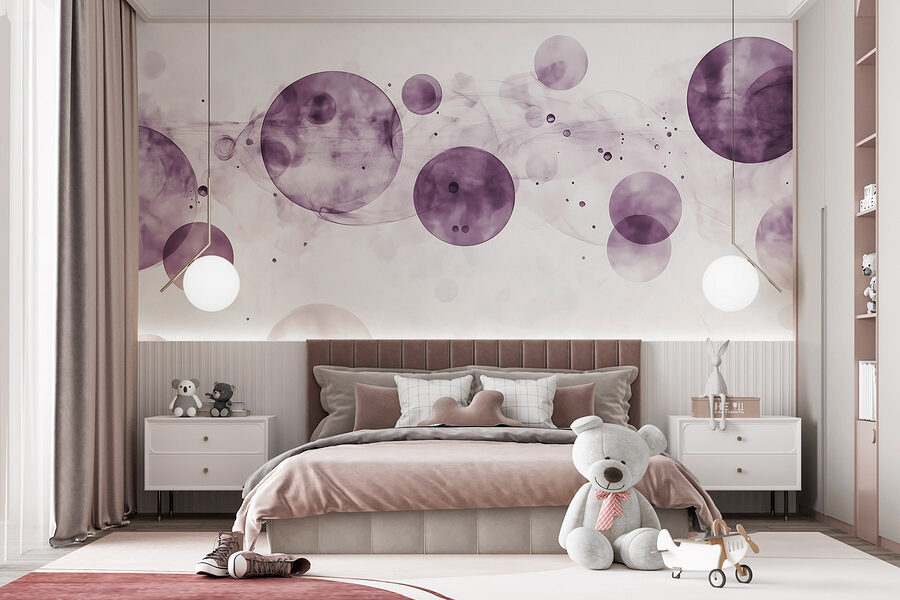 Transformați o cameră? Această pictură murală, cu cercurile sale purpurii și fumul visător pe un fundal alb strălucitor, adaugă un strop de fantezie care se simte ca o invitație la visare cu ochii deschiși. Imaginați-vă că intrați într-un spațiu în care pereții par să danseze în culori, făcând chiar și cele mai banale momente să pară speciale. Prietenii vor intra, se vor uita de două ori și vor întreba de unde a apărut magia. Este perfect pentru a crea o atmosferă relaxantă într-o cameră de zi sau o explozie de inspirație într-un colț creativ. Lăsați cercurile să vorbească; ele vă reamintesc ușor că arta poate fi jucăușă, la fel ca viața.