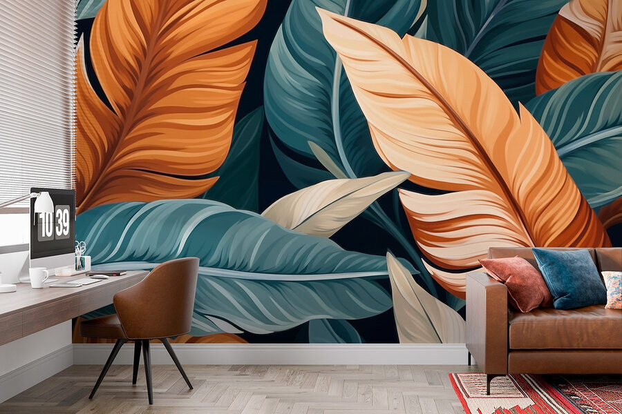 Transformați-vă spațiul cu această pictură murală cu frunze vibrante, care seamănă cu o plimbare printr-un paradis tropical. Imaginați-vă că intrați în camera dvs. și sunteți întâmpinați de frunze luxuriante în culori bogate, pământii – este ca și cum ați invita natura chiar înăuntru. Această pictură murală nu arată doar uimitor, ci aduce un sentiment de calm și căldură. Perfectă pentru peretele gol la care ați pus ochii, aceasta adaugă profunzime fără a copleși camera. Prietenii te-ar putea întreba chiar dacă te-ai mutat la tropice! Este mai mult decât un decor; este o stare de spirit, un vibe și un strop de bucurie în viața de zi cu zi.