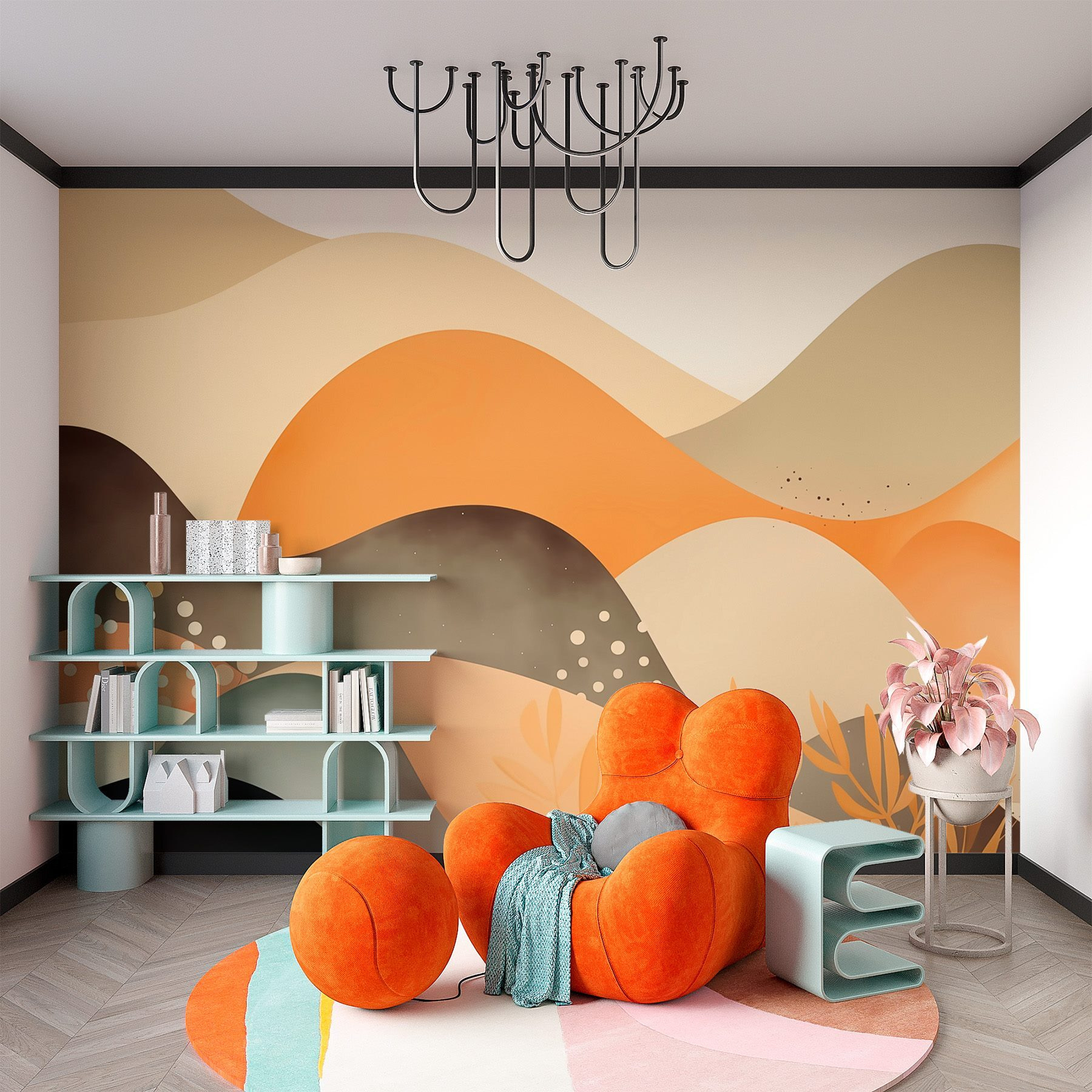 Transformați orice perete într-o escapadă senină cu acest peisaj mural uimitor din deșert. Imaginați-vă sorbind un ceai cu gheață în timp ce valuri moi de tonuri calde și curbe blânde aduc liniștea deșertului în interior. Este ca și cum ai avea o bucată de natură chiar la tine acasă – fără nisip în pantofi! Detaliile subtile – acele puncte jucăușe și aluzii de frunze – fac ca fiecare privire să se simtă ca o nouă descoperire. Fie că înveselește un colțișor de lectură confortabil sau servește drept fundal vibrant pentru întâlniri pline de viață, farmecul acestei picturi murale este greu de rezistat. Invită la un sentiment de calm, perfect pentru momentele de reflecție sau inspirație. Imaginați-vă doar cum această frumusețe ar putea aduce un sentiment de aventură în viața de zi cu zi!