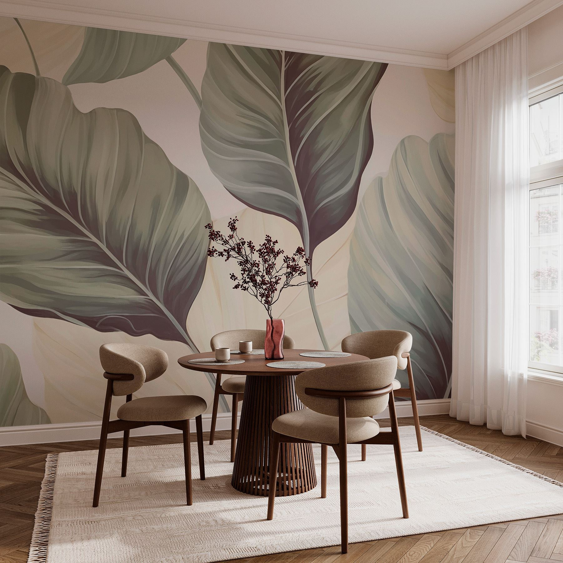 Transformați orice cameră într-o evadare liniștită cu această pictură murală uimitoare, cu modele elegante de frunze care șoptesc liniștea naturii. Imaginați-vă că pășiți într-un colț confortabil, unde verdele blând și albul moale creează un fundal liniștitor. Este ca și cum ați aduce o felie de grădină interioară chiar în spațiul dvs. de locuit. Perfect pentru acele zile în care doriți să vă relaxați cu o ceașcă de ceai sau o carte bună. În plus, designul se potrivește cu diferite stiluri – fie că aveți o vibe minimalistă sau puțin boho. Adăugați câteva perne confortabile și iată, zonă de relaxare instantanee!