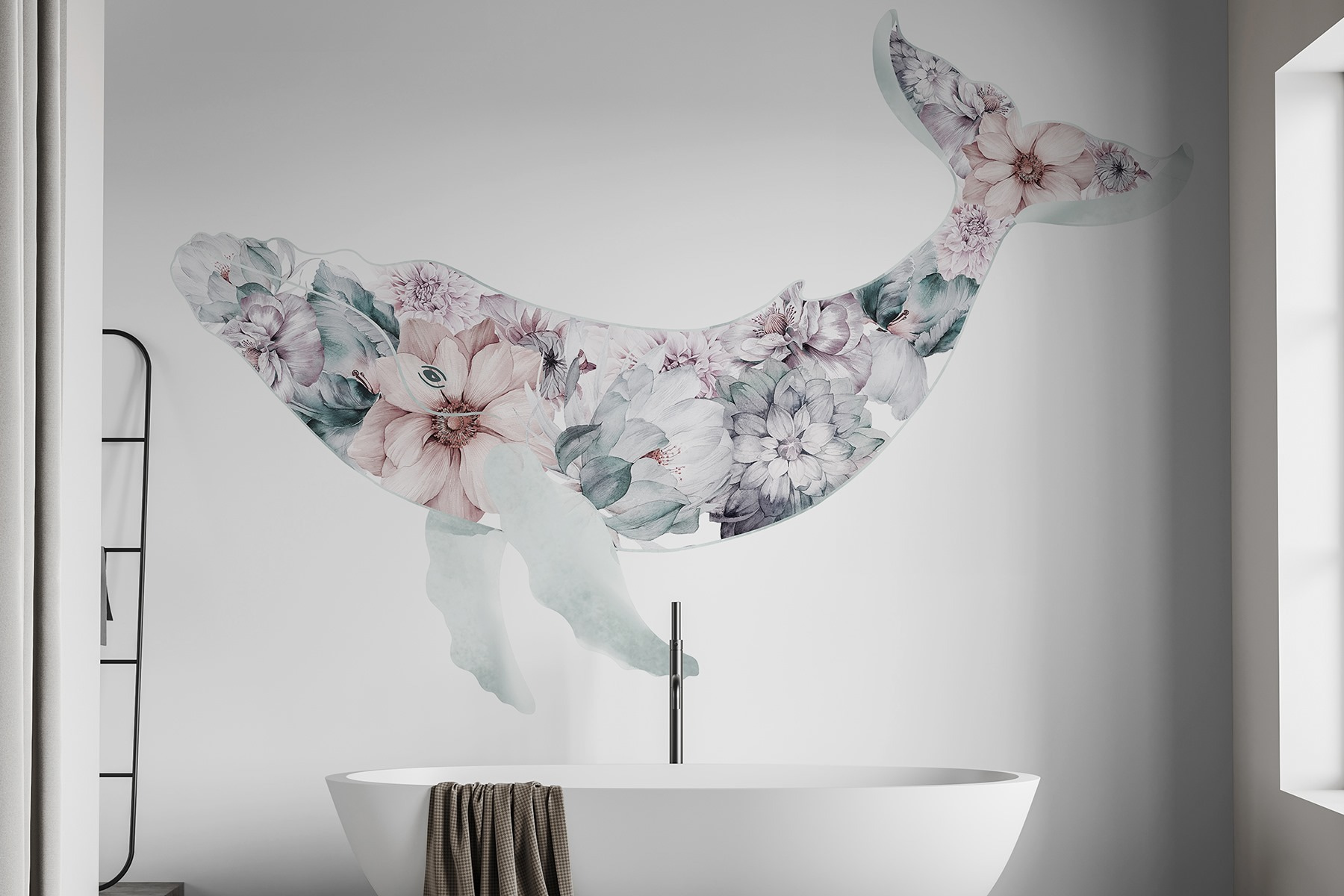 Transformați-vă spațiul cu această balenă murală fermecătoare, un amestec încântător de vibrații oceanice și farmec floral. Imaginați-vă: o balenă masivă, senină, alunecând grațios printr-o grădină de petale moi și frunze luxuriante. Este ca și cum ai aduce o atingere a mării chiar în sufrageria ta, unde fiecare privire este ca o adiere de aer proaspăt de mare. Această pictură murală nu doar decorează, ci spune o poveste despre aventuri pașnice și evadări de vis. Ideală pentru orice cameră care are nevoie de un pic de magie, vă va face să vă simțiți ca și cum ați înota într-un ocean atemporal de liniște. Perfectă pentru crearea unui colț de lectură confortabil sau a unui dormitor liniștit, această piesă ar putea stârni visuri cu ochii deschiși despre odisee oceanice de fiecare dată când treceți pe lângă ea. Simțiți cum valurile blânde vă spală pereții!