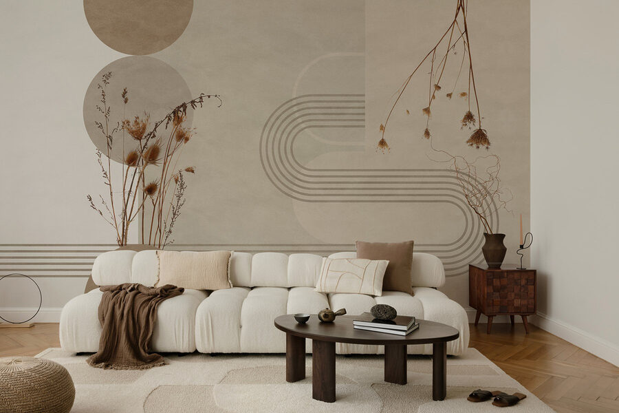 Transformați-vă spațiul cu această pictură murală uimitoare, cu o paletă caldă de maro și alb, cercuri fermecătoare și desene delicate de plante. Imaginați-vă că pășiți într-o cameră confortabilă în care tonurile pământului fac ca totul să pară puțin mai primitor. Liniile netede și formele organice curg împreună, creând un sentiment de liniște – perfect pentru acel colț de lectură pe care îl aveți în minte. Imaginați-vă savurând o ceașcă de ceai în timp ce vă bucurați de această atmosferă senină. Este ca o îmbrățișare blândă pentru pereții tăi! Fie că se află în camera de zi sau în dormitor, această pictură murală șoptește o prezență liniștitoare, făcând orice zi să se simtă ca o retragere. Îmbrățișați frumusețea simplității și lăsați această pictură murală să aducă o notă de natură în interior. Cui nu i-ar plăcea un pic de verdeață, chiar dacă este doar pe pereți?