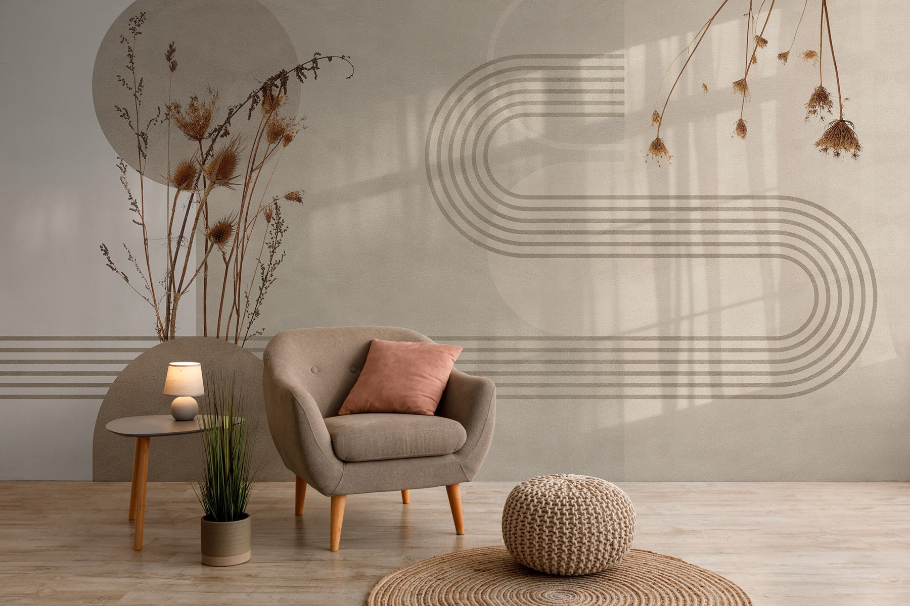 Transformați-vă spațiul cu această pictură murală uimitoare, cu o paletă caldă de maro și alb, cercuri fermecătoare și desene delicate de plante. Imaginați-vă că pășiți într-o cameră confortabilă în care tonurile pământului fac ca totul să pară puțin mai primitor. Liniile netede și formele organice curg împreună, creând un sentiment de liniște – perfect pentru acel colț de lectură pe care îl aveți în minte. Imaginați-vă savurând o ceașcă de ceai în timp ce vă bucurați de această atmosferă senină. Este ca o îmbrățișare blândă pentru pereții tăi! Fie că se află în camera de zi sau în dormitor, această pictură murală șoptește o prezență liniștitoare, făcând orice zi să se simtă ca o retragere. Îmbrățișați frumusețea simplității și lăsați această pictură murală să aducă o notă de natură în interior. Cui nu i-ar plăcea un pic de verdeață, chiar dacă este doar pe pereți?