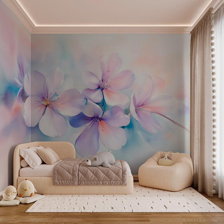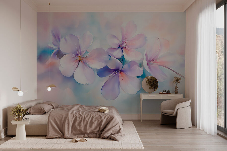 Imaginați-vă că pășiți într-o grădină japoneză de vis, chiar din camera dvs. de zi. Această pictură murală de perete, care prezintă un buchet minunat de flori mov, aduce un sentiment de calm și frumusețe care se simte ca o îmbrățișare blândă pentru casa ta. Stilul moale de acuarelă face ca fiecare petală să pară că flutură ușor, adăugând o notă de fantezie oricărui spațiu. Imaginați-vă că vă relaxați cu o carte bună, înconjurați de aceste flori, transformând instantaneu o zi obișnuită într-un refugiu liniștit. Este ca și cum ai aduce un pic de natură în casă – fără albine! O modalitate perfectă de a înveseli un dormitor sau de a adăuga farmec unui colț de lectură confortabil.