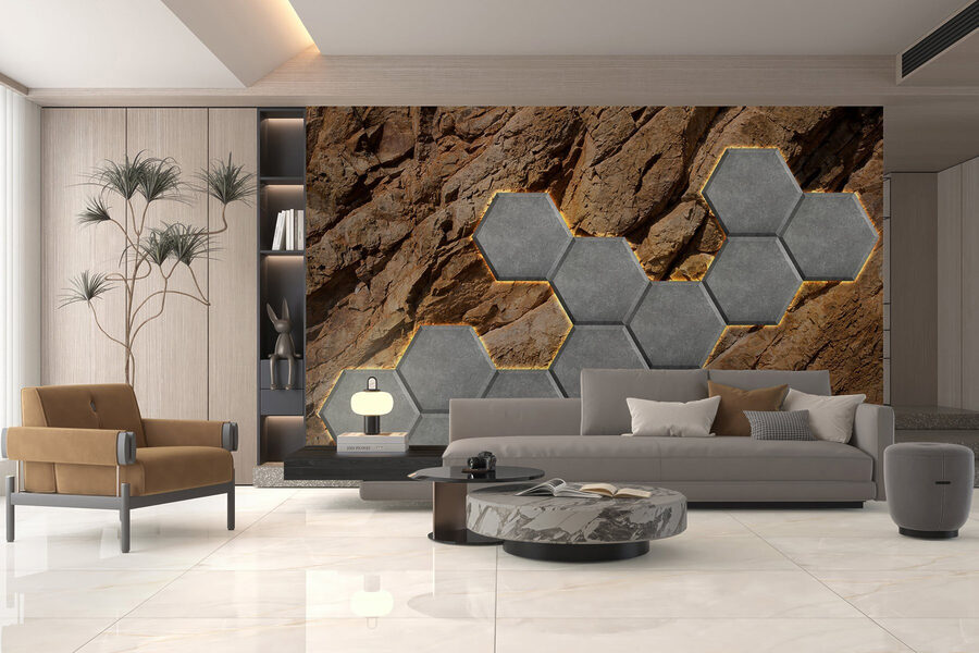 Transformați-vă spațiul cu această pictură murală cu hexagoane uimitoare, amplasate pe un fundal de stâncă aspră. Este ca și cum ai aduce o bucată de natură în interior, adăugând o notă de pământesc care poate fundamenta orice cameră. Imaginați-vă sorbind cafea în timp ce absorbiți vibrațiile calde, texturate – vă veți simți ca într-o mini-retragere. Designul din piatră nu este doar atrăgător din punct de vedere vizual; este un starter instant de conversație. Prietenii s-ar putea apleca puțin mai aproape pentru a admira detaliile. În plus, este perfect atât pentru stilul modern, cât și pentru cel rustic. O întorsătură a tradiției care se simte bine.