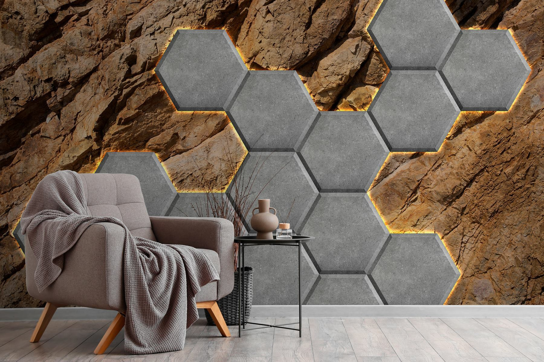 Transformați-vă spațiul cu această pictură murală cu hexagoane uimitoare, amplasate pe un fundal de stâncă aspră. Este ca și cum ai aduce o bucată de natură în interior, adăugând o notă de pământesc care poate fundamenta orice cameră. Imaginați-vă sorbind cafea în timp ce absorbiți vibrațiile calde, texturate – vă veți simți ca într-o mini-retragere. Designul din piatră nu este doar atrăgător din punct de vedere vizual; este un starter instant de conversație. Prietenii s-ar putea apleca puțin mai aproape pentru a admira detaliile. În plus, este perfect atât pentru stilul modern, cât și pentru cel rustic. O întorsătură a tradiției care se simte bine.