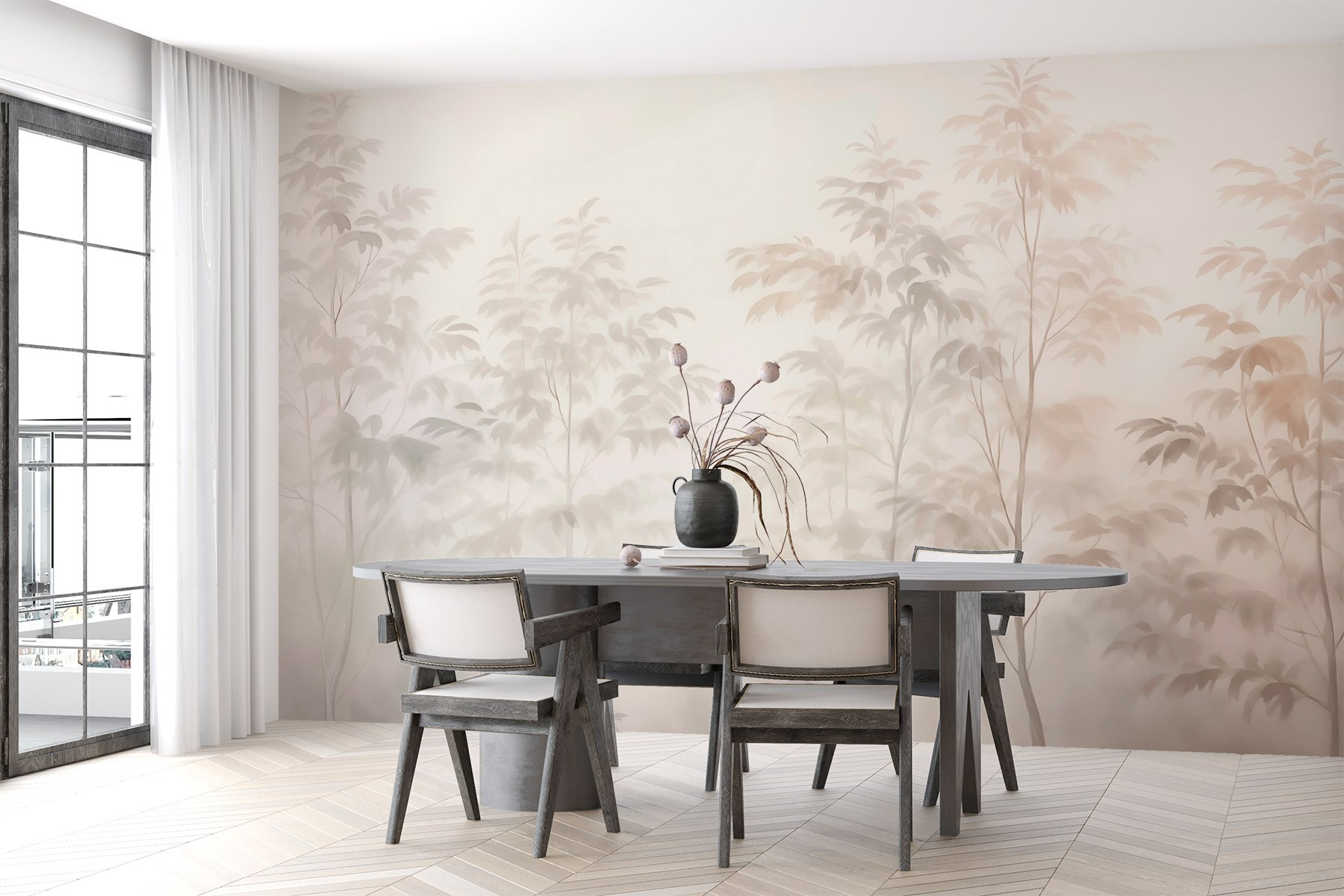 Transformați o cameră într-o evadare de vis cu Fototapet Trees in the Fog. Imaginați-vă că vă treziți într-o scenă liniștită de pădure, în care siluetele moi ale copacilor se estompează ușor într-o ceață misterioasă. Este ca și cum ai avea o bucățică de natură chiar pe pereții tăi, invitând vibrații calme și poate chiar o ceașcă de cafea sau ceai în mână. Perfect pentru acele momente de liniște în care vrei doar să respiri. Fie că este vorba de un colț de lectură confortabil sau de un dormitor senin, această pictură murală adaugă o șoaptă de liniște. Este ca și cum peretele dvs. a decis să facă o plimbare în ceață – cui nu i-ar plăcea asta?