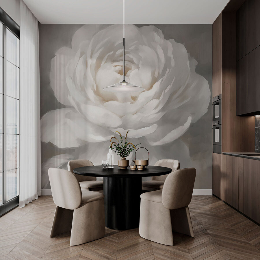 Intrați într-o atmosferă senină cu această pictură murală care prezintă o floare albă de vis, combinată cu accente moi, cu frunze. Imaginați-vă intrând într-un spațiu care se simte ca o briză ușoară într-o dimineață de primăvară. Tonurile calme creează o atmosferă primitoare, perfectă pentru relaxare după o zi lungă. Este aproape ca și cum floarea șoptește secrete de liniște și reînnoire. Fie că este amplasată într-un colț de lectură confortabil sau într-un hol aerisit, această pictură murală transformă banalul în ceva special. Este genul de decor care ar putea inspira chiar și un pic de visare cu ochii deschiși – cui nu i-ar prinde bine un pic din asta? Scufundați-vă într-o lume în care natura și arta dansează împreună, făcându-vă pereții să cânte.