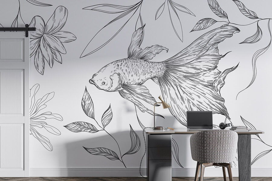 Transformați orice spațiu cu această pictură murală captivantă care prezintă un pește fermecător alunecând printre plante delicate. Designul alb-negru aduce un farmec unic, adăugând o notă de eleganță fără a copleși camera. Imaginați-vă sorbind cafea, liniile blânde dansând pe perete, stârnind gânduri liniștitoare și idei creative. Este ca o șoaptă a naturii, invitând pacea în agitația ta. Perfect pentru oricine dorește să împrăștie puțină magie artistică pe pereții săi, este și un starter de conversație. Cine nu ar vrea să discute despre “partenerul de înot” de pe peretele său?