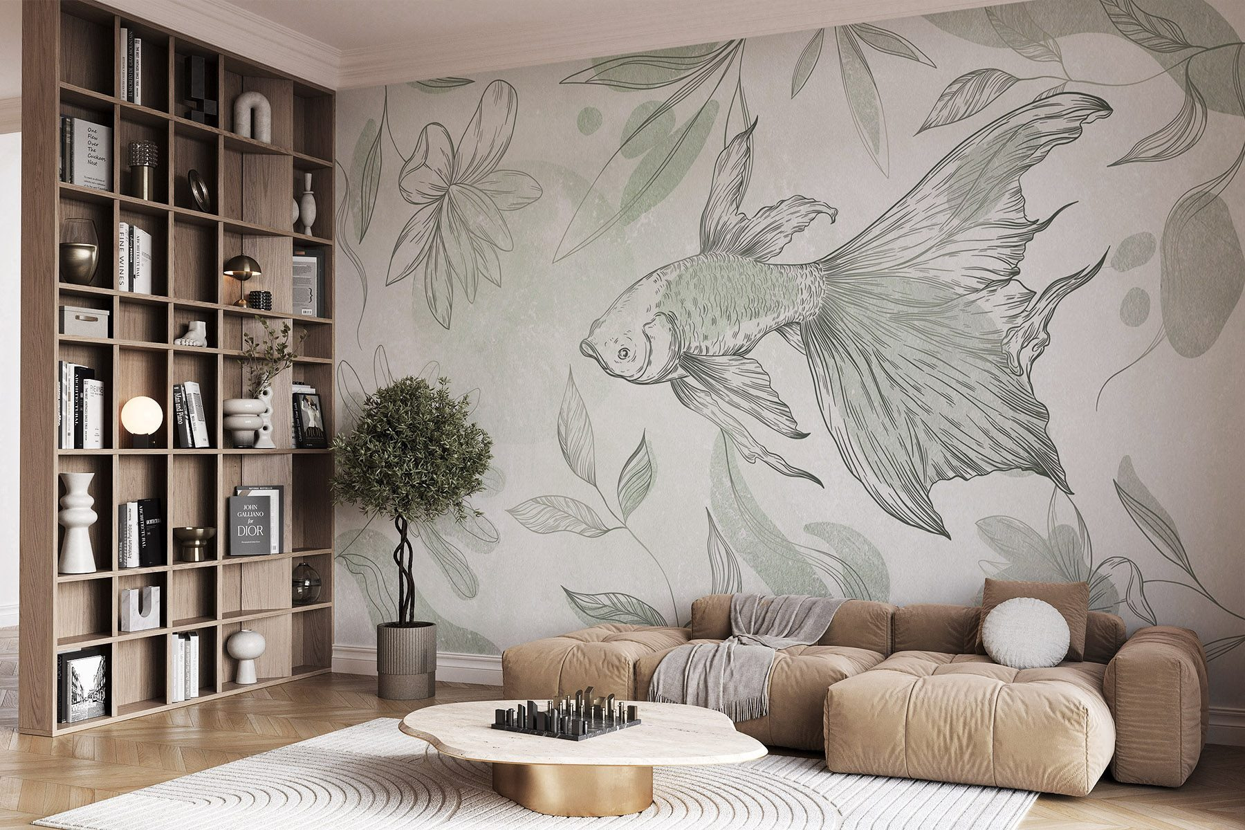 Transformați orice cameră într-o evadare senină cu această pictură murală cu pești delicați și plante capricioase. Este ca și cum ai aduce o felie de natură în interior, unde culorile blânde dansează pe pereți și invită la un sentiment de calm. Imaginați-vă sorbind ceai în timp ce priviți acești pești grațioși, aproape ca și cum ar înota prin visele voastre cu ochii deschiși. Este perfect pentru un colțișor de lectură confortabil sau pentru acel perete gol care a implorat să prindă viață. Această pictură murală nu doar decorează, ci inspiră o atmosferă liniștită, făcând din fiecare privire o mică escapadă. Serios, cine ar fi crezut că decorul de acasă se poate simți ca un acvariu liniștit?