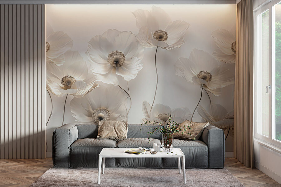 Înveseliți orice cameră cu această pictură murală uimitoare, care prezintă un grup minunat de flori albe ce se simt ca o briză blândă de primăvară. Imaginați-vă că pășiți în spațiul dvs. și sunteți întâmpinați de eleganța lor moale, aducând un sentiment de liniște. Aceste flori nu stau doar frumos; ele insuflă viață unui perete tern, transformându-l într-un colț confortabil al naturii. Perfecte pentru o cameră de zi sau un dormitor, nu numai că vor atrage privirile, dar vor invita și la conversații. Cine nu ar vrea să discute despre aceste flori frumoase? Este ca și cum ai avea o grădină în interior, mai puțin cutia de udat. Adăugați o notă de fantezie și farmec cu această pictură murală și lăsați magia florală să se desfășoare.