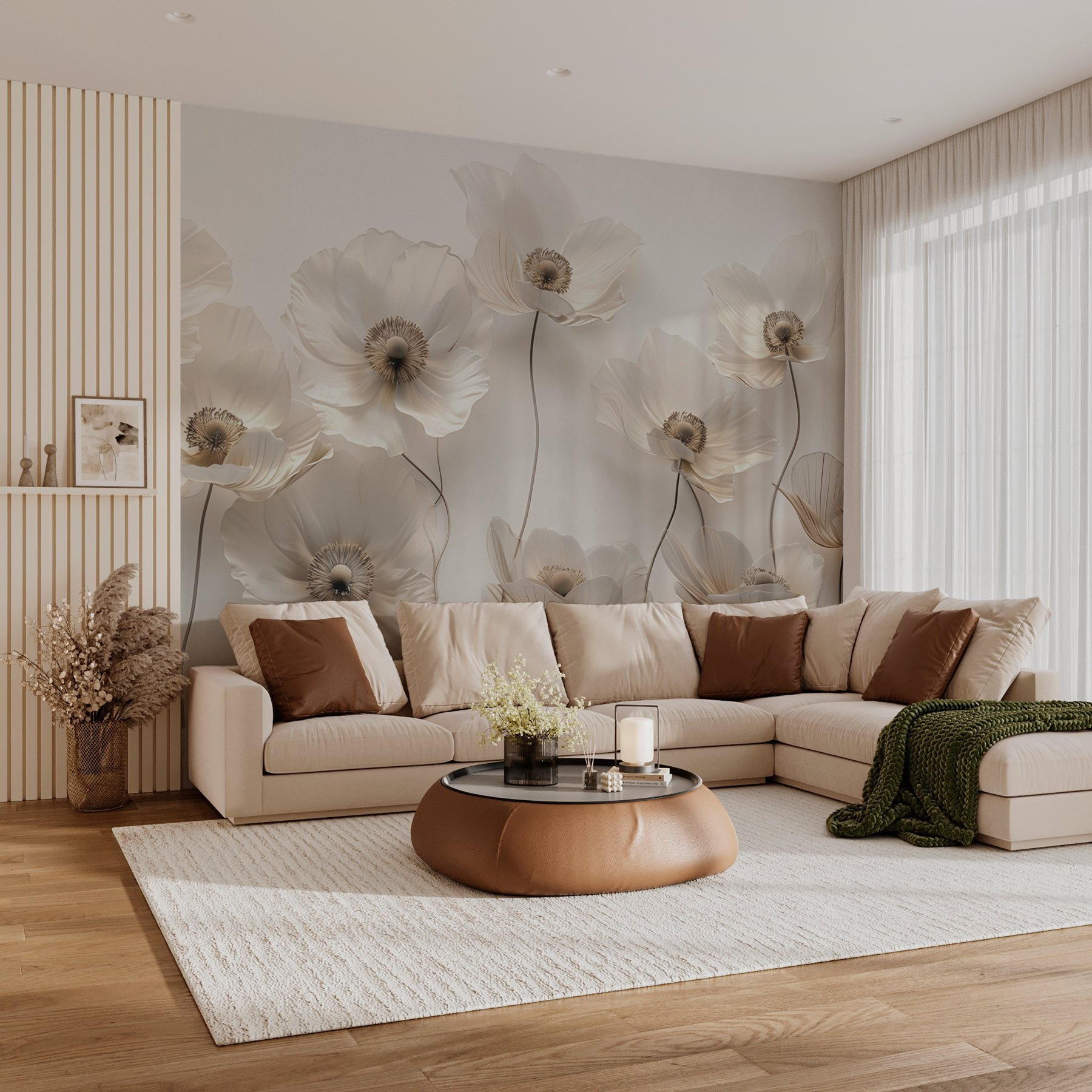 Înveseliți orice cameră cu această pictură murală uimitoare, care prezintă un grup minunat de flori albe ce se simt ca o briză blândă de primăvară. Imaginați-vă că pășiți în spațiul dvs. și sunteți întâmpinați de eleganța lor moale, aducând un sentiment de liniște. Aceste flori nu stau doar frumos; ele insuflă viață unui perete tern, transformându-l într-un colț confortabil al naturii. Perfecte pentru o cameră de zi sau un dormitor, nu numai că vor atrage privirile, dar vor invita și la conversații. Cine nu ar vrea să discute despre aceste flori frumoase? Este ca și cum ai avea o grădină în interior, mai puțin cutia de udat. Adăugați o notă de fantezie și farmec cu această pictură murală și lăsați magia florală să se desfășoare.